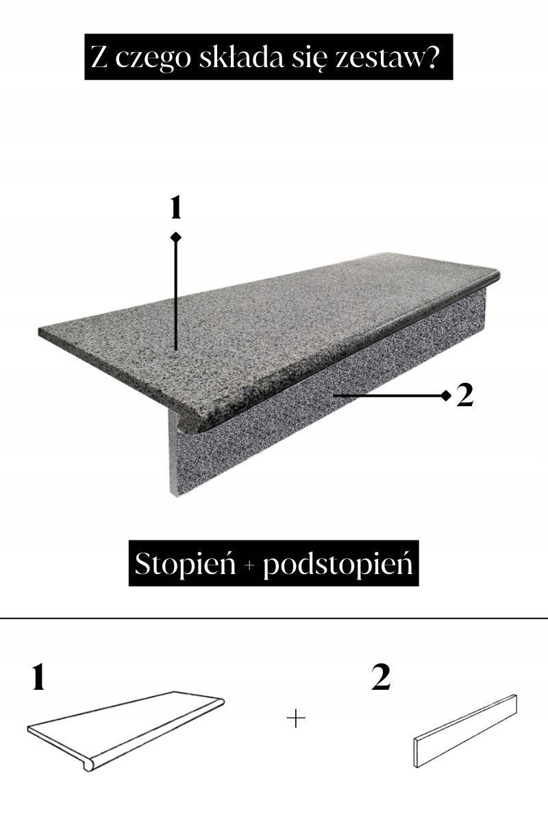 Набор включает в себя stopnica Bullnose и сопоставление Прямой подход , подготовленный для быстрого сборки. 1 градуса (100x35x2 см) и 1 отключение (100x15x2 см) . Благодаря компактным размерам, он идеально подходит для въездной лестницы, сада и узкой лестницы. Гранит G682 отличается теплыми цветами и высоким сопротивлением.