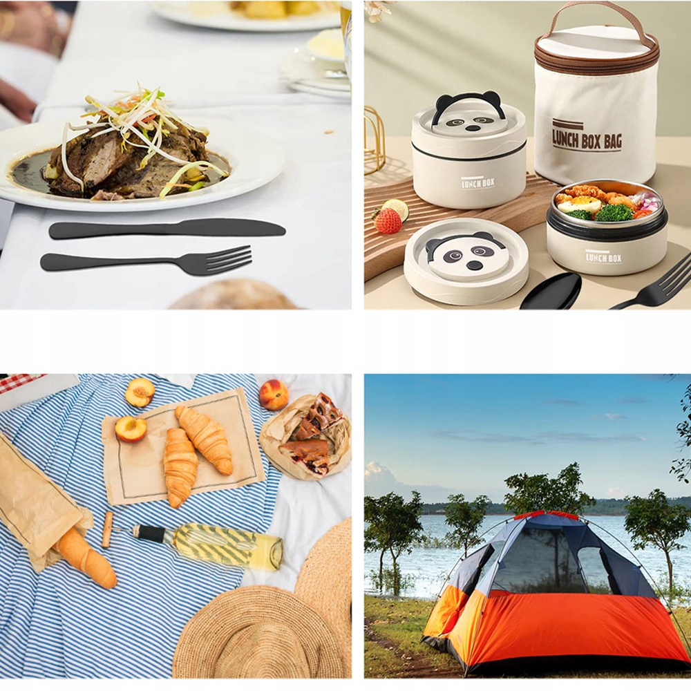 🍴 【【】: Этот набор вилок, ложки и ножей изготовлен из нержавеющей стали и подходит для повторного использования для повседневного использования. Блюда легко транспортировать и обеспечивают приятный кулинарный опыт во время обеда на работе или во время еды за пределами дома.