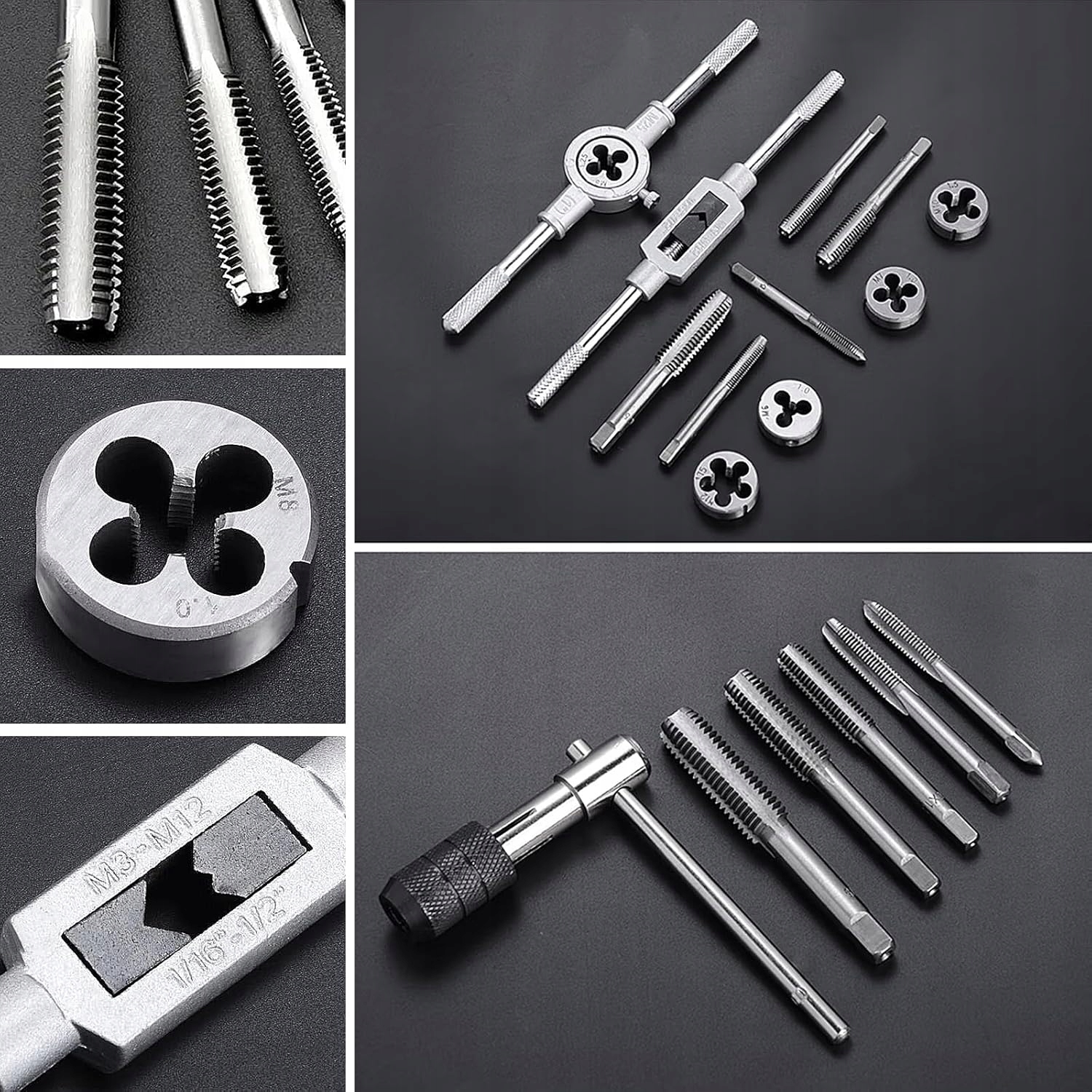 - M12 x 0,75 мм, M12 x 1,0 мм, M12 x 1,25 мм, M12 x 1,5 мм, M12 x x 1,75 мм