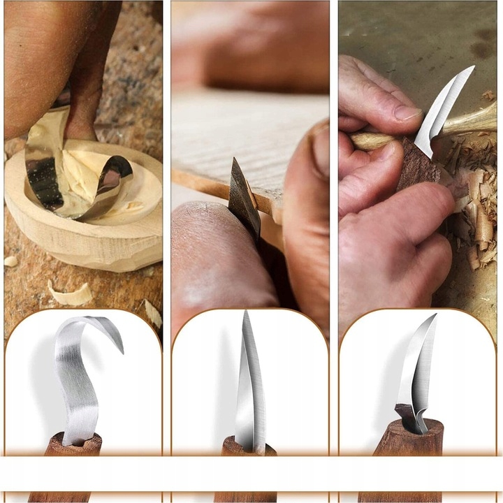 Разумное сочетание — В наши наборы для строгания входят 3 типа ножей для строгания, что очень подходит для набора инструментов для резьбы по дереву для начинающих мастеров по дереву.