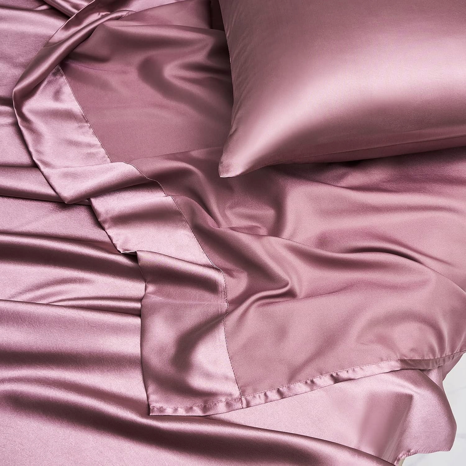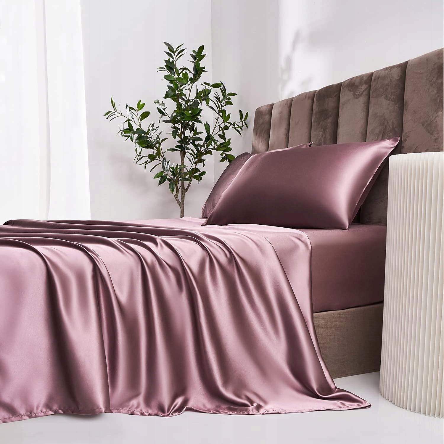 Лист Motherper 4 -Piece Satine Shiny Smooth, 200x200 см на матрасах до 36 см, набор листов с листом, подходящим листом, 2 наволочки - фиолетовый