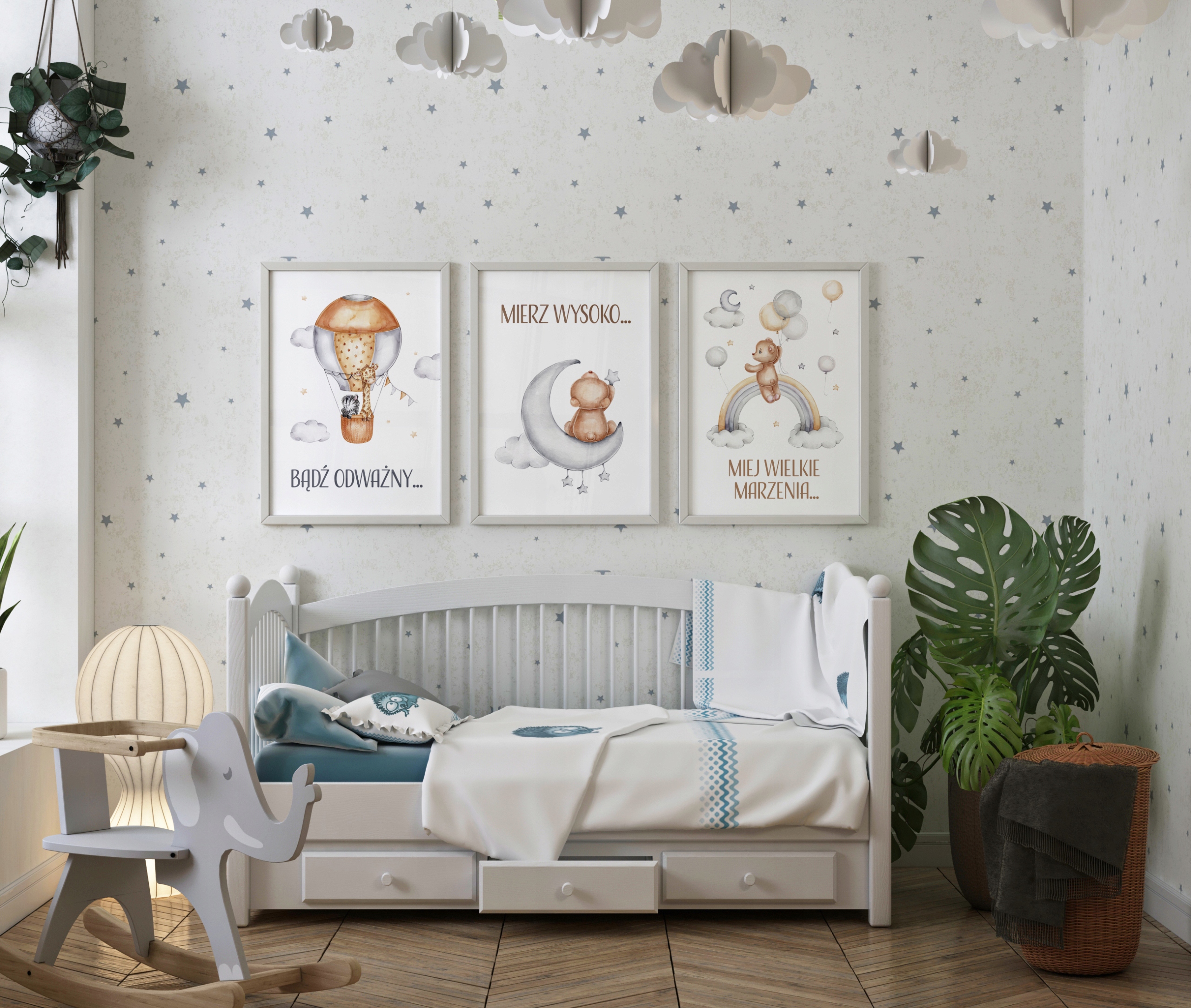 Вы ищете уникальное украшение, которое придаст внутреннему и уютному персонажу интерьера? Плакаты с очаровательными иллюстрациями плюшевых медведей являются идеальным решением для детской комнаты, которая внесет сказочную атмосферу и тонкое очарование. Тщательно выбранные цвета и тонкие дизайны делают их хорошо смешиваться как в пространстве для мальчика, так и для девочки. Изготовленные из высококачественной бумаги, они обеспечивают долговечность и отличное качество печати. Это отличная идея для подарочного At Рождение , день рождения , Крещение или год - уникальный сувенир, который будет дольше оставаться с малышом дольше.