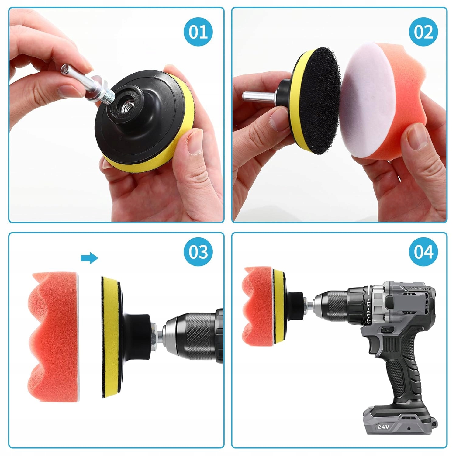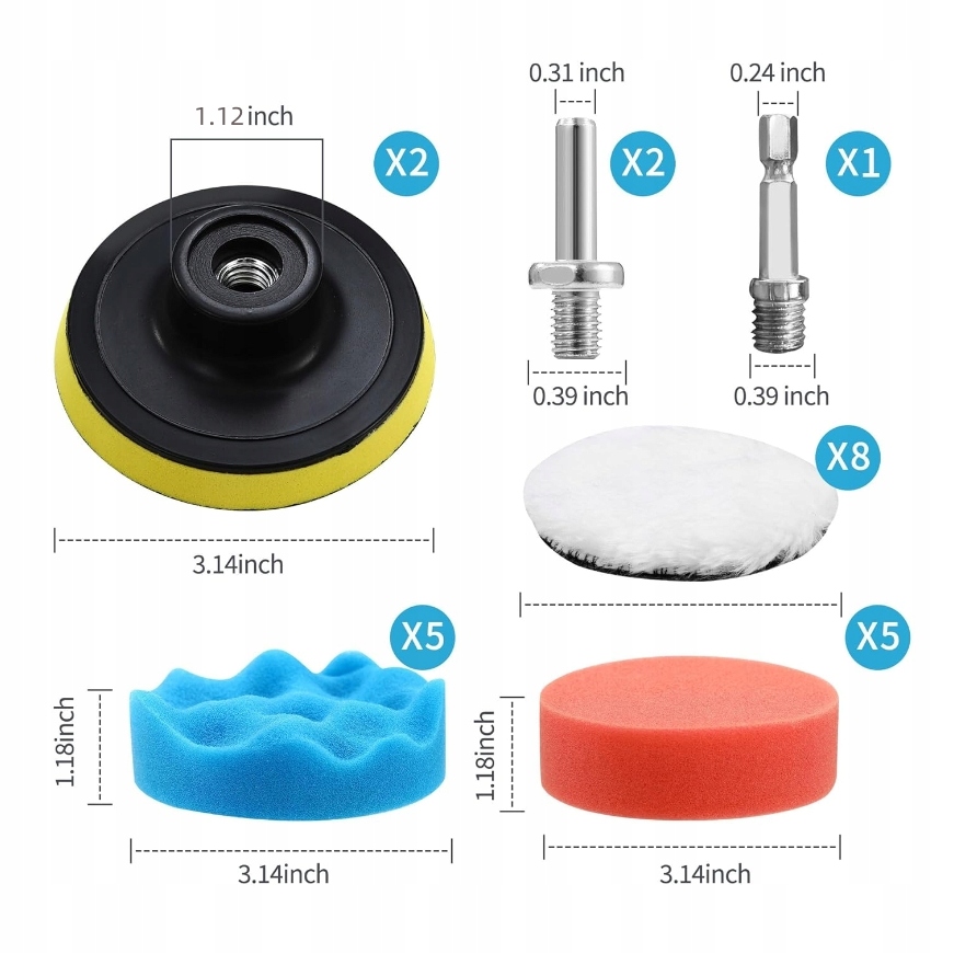 - Набор содержит 10 полироночных губки, 8 шерстяных полировочных прокладок, 2 M10 буровых адаптеров, 2 монтажных винта (плюс адаптер для гексагональных битов).