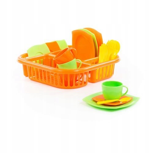 Пикник, полдник, обед, ужин и любые другие угощения. Оказывается, наши детские куклы и мягкие игрушки едят бесчисленное количество раз в день. Разнообразить веселье мы можем, подарив нашим детям набор посуды «Алиса» с сушилкой на 4 человека от «Полесье Кулейник». Это обычный кофейный сервиз. Однако в комплект входит сушилка для посуды. Ведь после веселья нужно наводить порядок. В этом случае умойтесь. В комплект входят: сушилка для посуды, четыре чашки с блюдцами, четыре тарелки и четыре набора столовых приборов. Качество используемого пластика гарантирует долговечность и безопасность изделия.