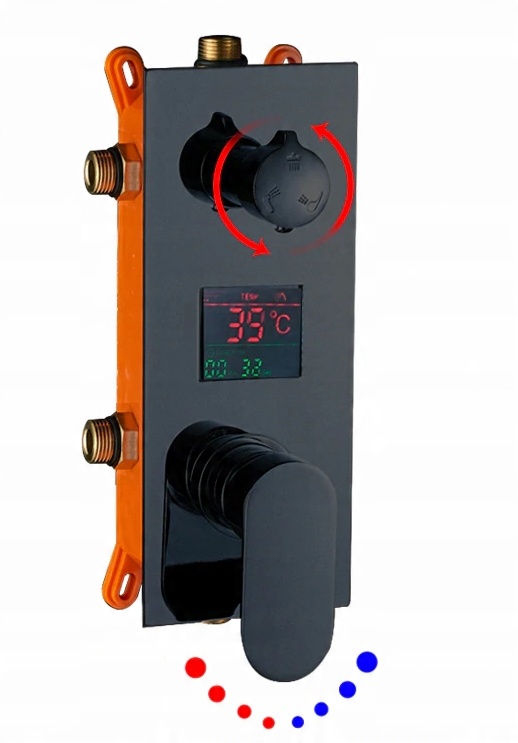 Стильный и современный душевой набор скрытого монтажа с большим тропическим душем, дисплеем, гидромассажем и ручкой душа.