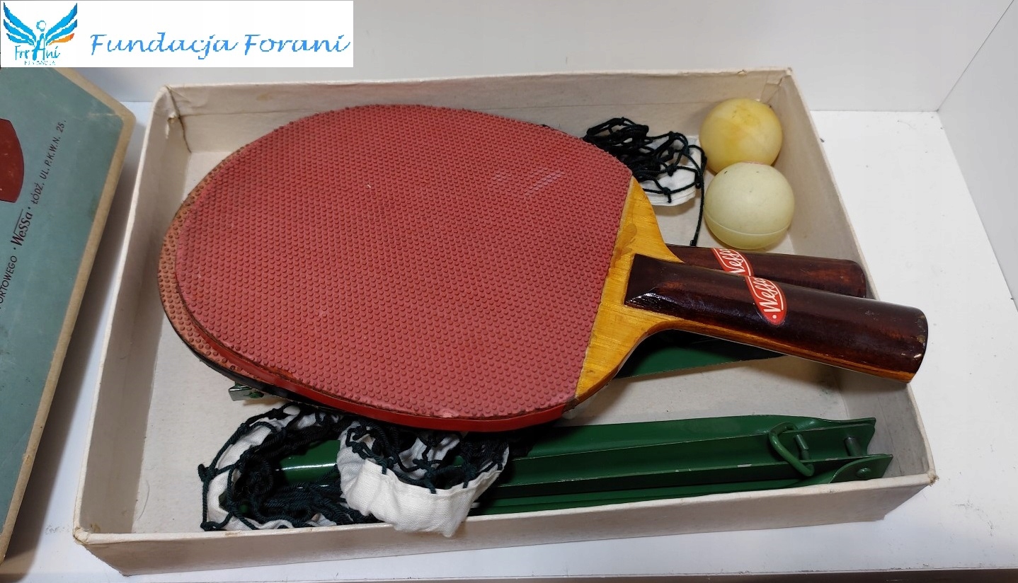 Старинный набор для пинг-понга времен Польской Народной Республики, сохранившийся в хорошем состоянии.