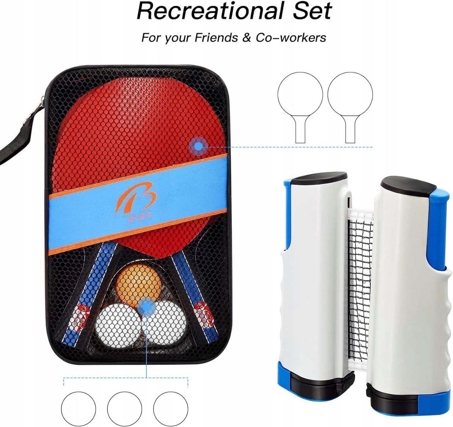 Наиболее важные преимущества h1> - Набор ракетки настольного тенниса - набор тенниса содержит 2 -х ракета, 3 x мяча и 1 x убирающегося настольного тенниса и 1 х мешок для переноски. Это обеспечивает отличное удобство и позволяет семье играть настольный теннис в любом месте и времени, особенно во время обучения, любителей и начинающих.