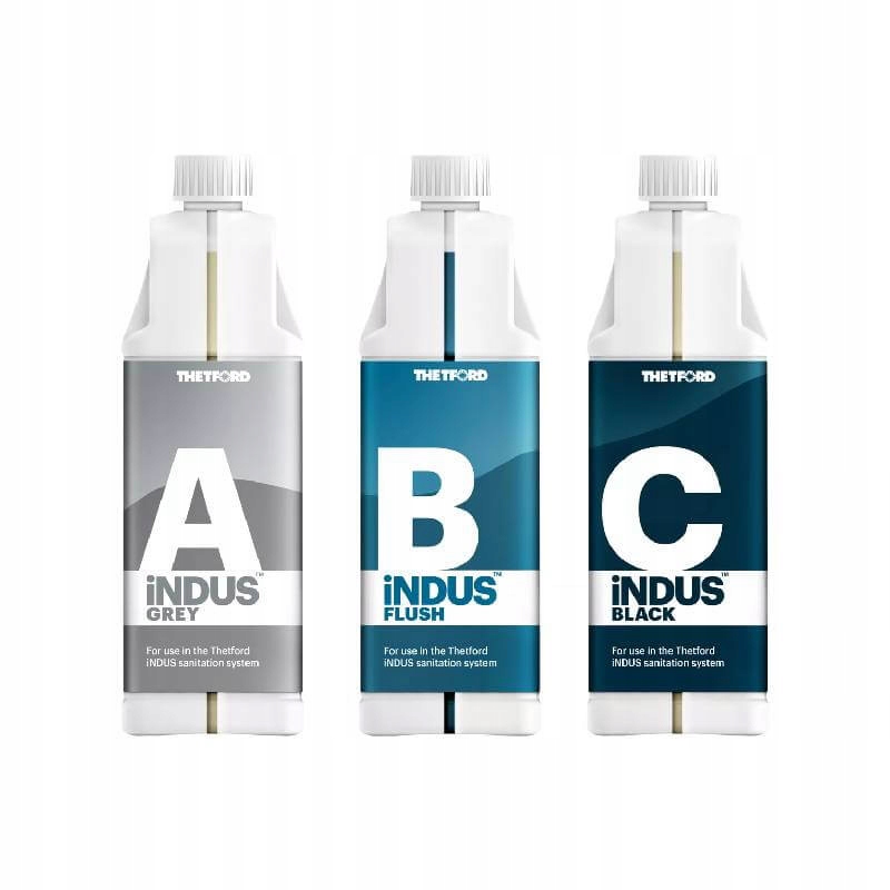 Система Indus является инновационным решением Thetford, которое позволяет большей свободе использовать туалеты в автодонях и прицепах. Он характеризуется лучшей эффективностью и управлением использованием воды для полоскания, что приводит к меньшему потреблению. Из -за того, что серая вода взята и используется, мы сохраним чистую воду. Когда бак с серой водой пуст только, то чистая вода принимается автоматически. Thetford Indus Black (C) жидкость посвящена черной воде, обеспечивая гигиенический и без запаха дренаж хранимой воды и контролирует образование неприятного запаха в аквариуме. Thetford Indus Flush (b) жидкость является не только эффективным средством поддержания чистоты, но также полностью совместимой с остальной частью системы Инда, обеспечивая оптимальное действие и длительную защиту. Индус (б) предназначена для полоскания воды. Thetford Grey (A) также обеспечивает эффективный процесс полоскания, который сохраняет дренажные устройства, а также чистоту трубопроводы и без неприятных запахов. Благодаря этому серая вода становится безопасной и гигиеничной для повторного использования в процессе промывки.