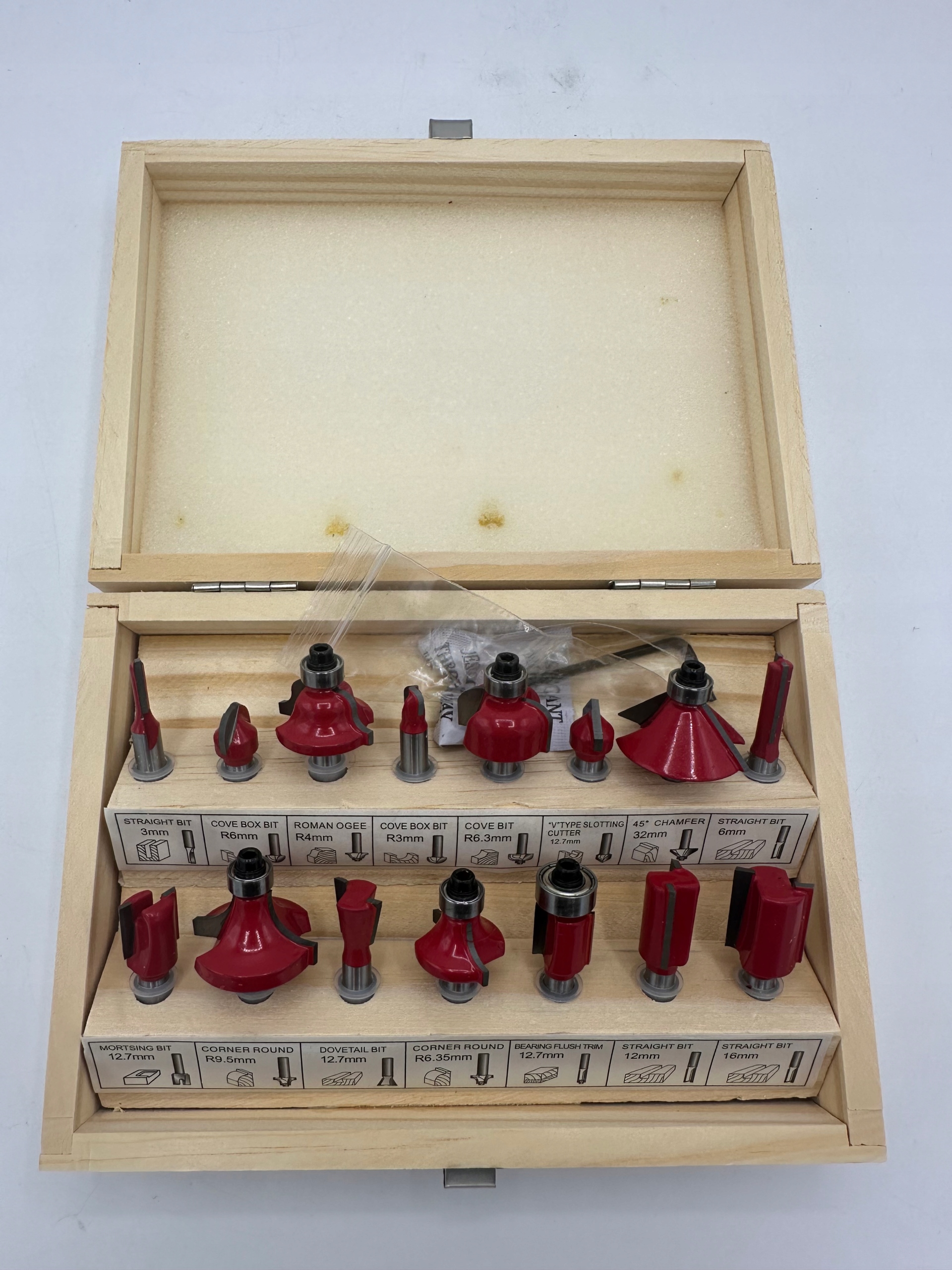 Набор резак: содержит биты для перерывов, биты на углубления, биты на хвост ласточки, прямые биты, круглые биты, прямые биты, 45 °, пособие, биты для пилотных панелей, римские биты.