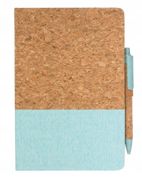 Элегантный блокнот, сочетающий в себе натуральную пробку и холст. Формат А5, 80 линованных листов (вес 70 г/м2). Оснащен ручкой из пробки, пшеничной соломки и ПП. Упакован в коробку.