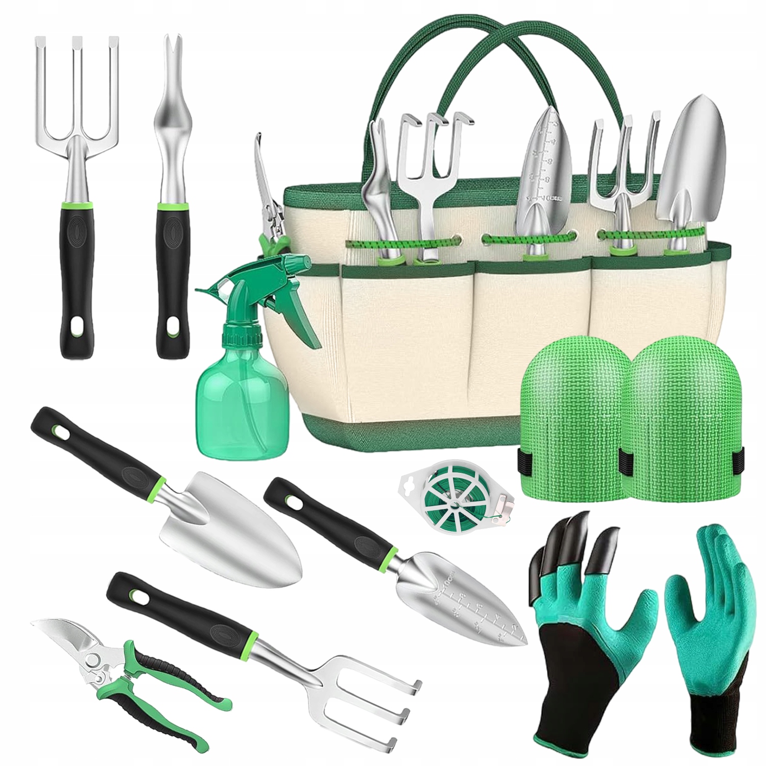 Набор садовых инструментов 11 шт, садовых инструментов долговечно зеленый