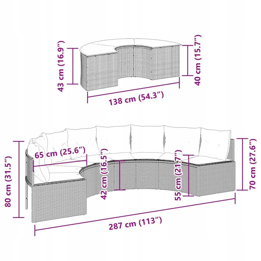набор садовой мебели Полу -циркулярный диван и черный табурет Rattan 287x70 см h1>