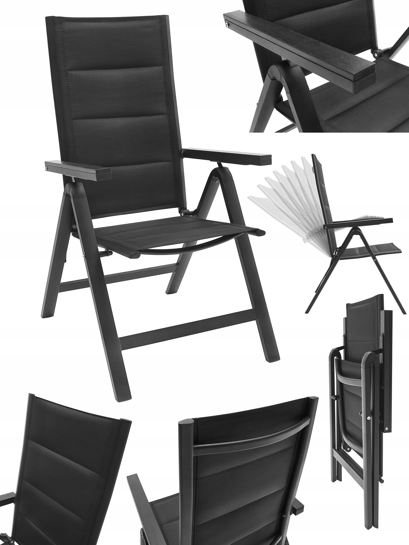 НАБОР САДОВОЙ МЕБЕЛИидеально подходит для вашего сада. Каркас имеет двойное порошковое покрытие, что идеально подходит для использования как внутри, так и снаружи помещений. Сиденье и спинка стула изготовлены из черной гибкой текстильной обивки, наполненной мягкой пеной для максимального комфорта. Имеет две боковые спинки из композитных плит ДПК. Используемые материалы не требуют частого ухода, устойчивы к погодным условиям и не требуют специальных средств по уходу. Ножки дополнительно оснащены пластиковыми чехлами. Столешница имеет столешницу из черного закаленного стекла. 5 мм.