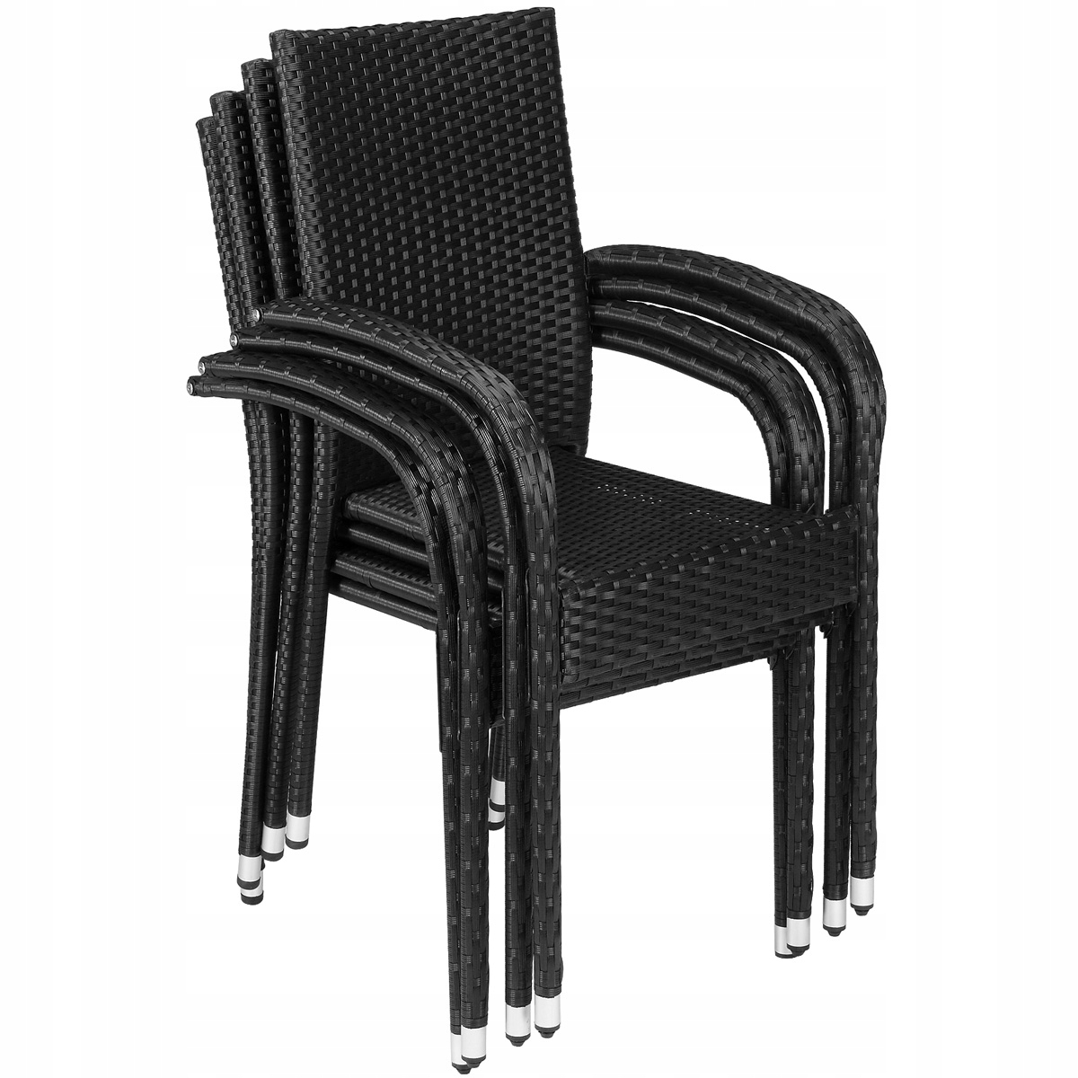 - 4 штабелируемых садовых стула из ротанга, черный.