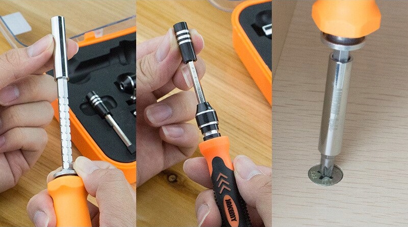 Профессиональный набор состоит из сменных 52 битов (пещер), точно сделанных с различными кончиками (Cross, Flat, Torx, Triple, Triangular, Forks), хорошего качества и высокой твердости. Все советы имеют магнитные свойства.