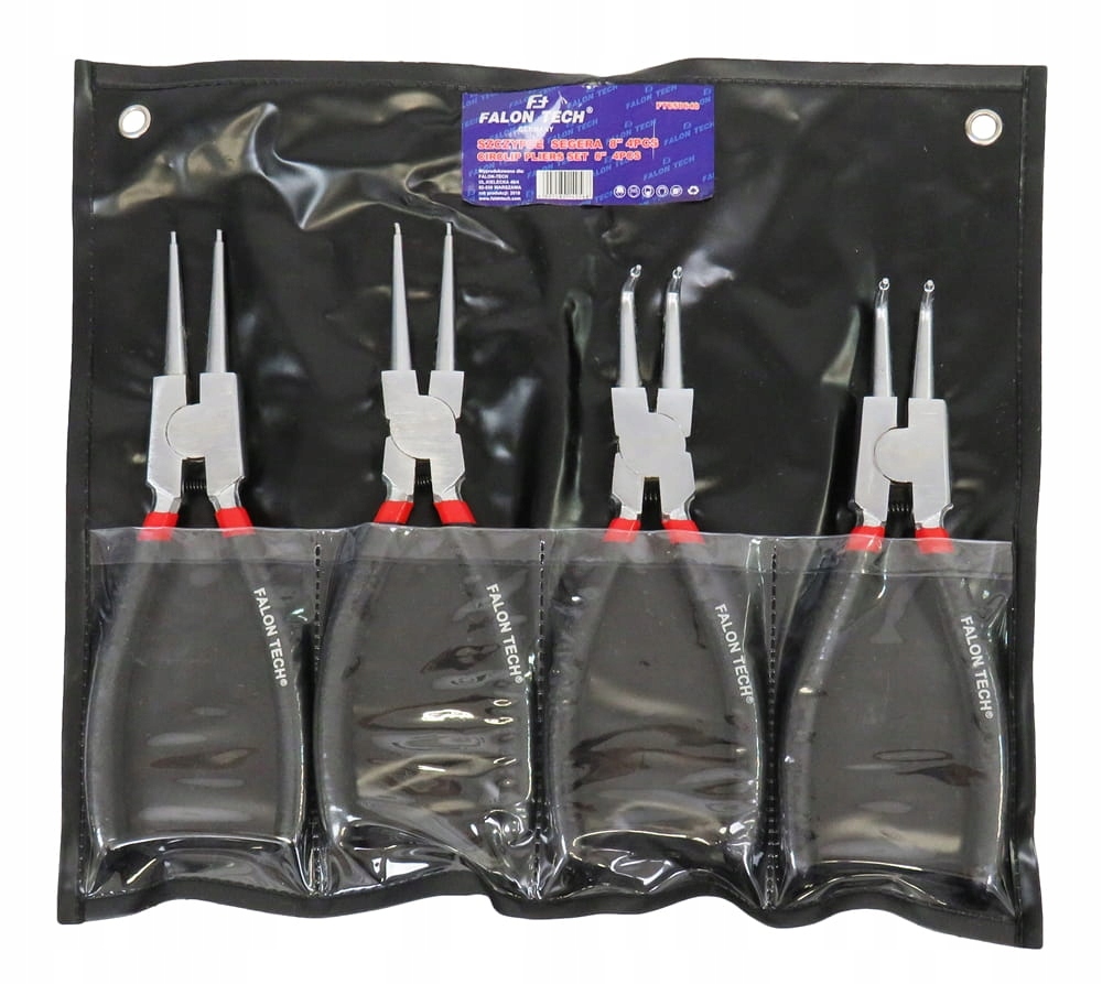 Комплект адаптирован для работы с внутренними и наружными кольцами. Имеет клещи с загнутыми и прямыми кончиками и два типа защиты: внутреннюю (расширяющуюся внутри втулки) и внешнюю (зажимающую, снаружи вала). Клещи изготовлены из прочной и долговечной хромованадиевой стали и имеют прорезиненные ручки. Это идеальные инструменты для сборки и разборки пружинных колец.
