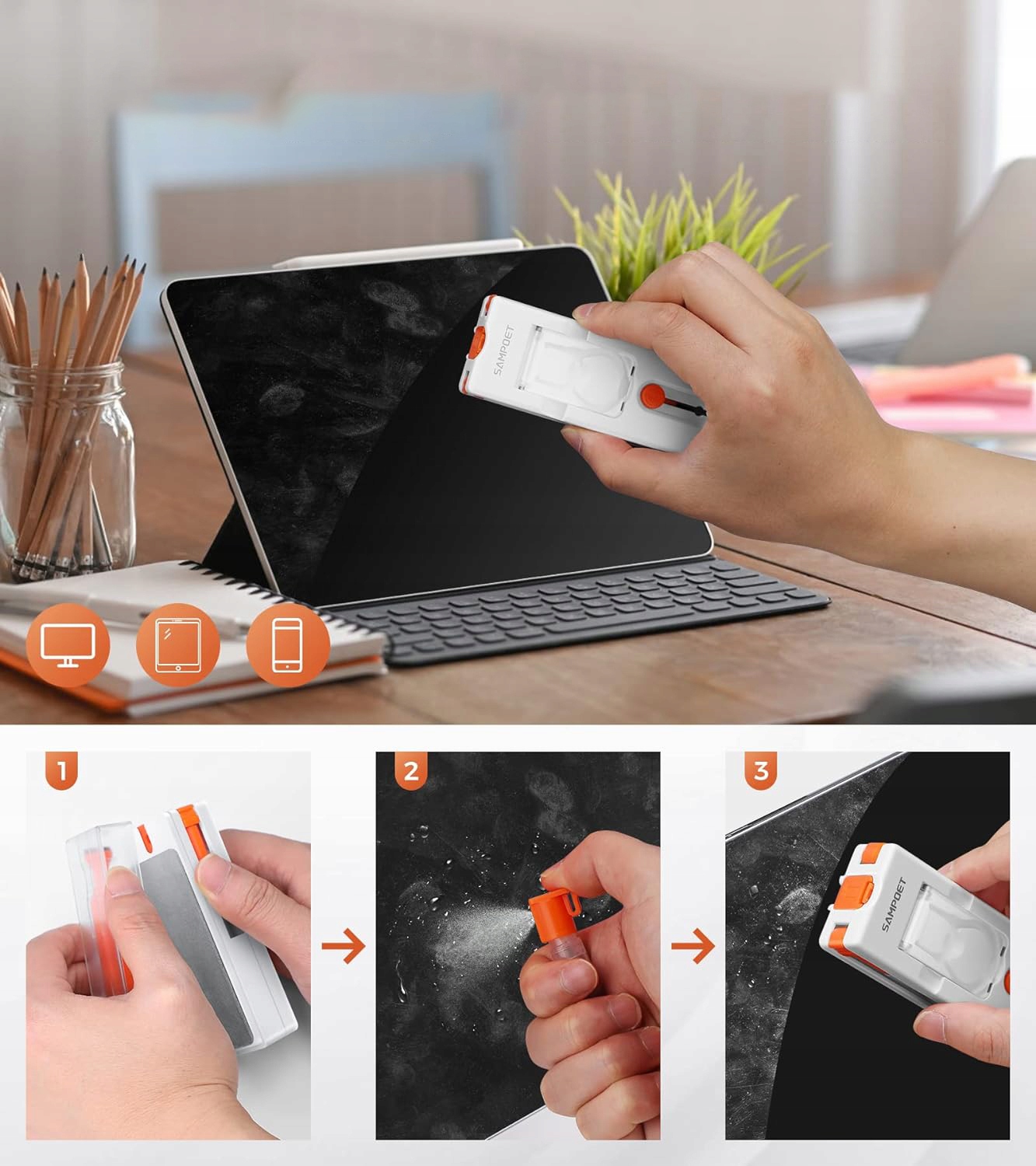 📱 Щетка высокой плотности позволяет более глубоко очистить некоторые мелкие детали. Салфеткой из микрофибры можно эффективнопротирать различные экраны, линзы и т. д.