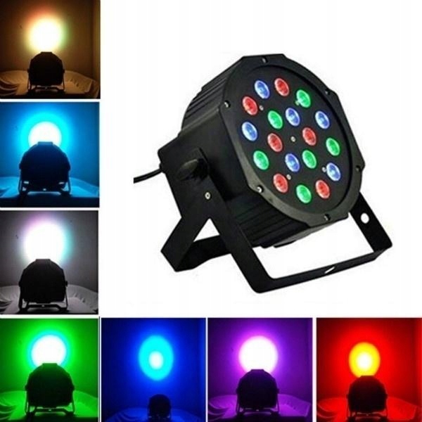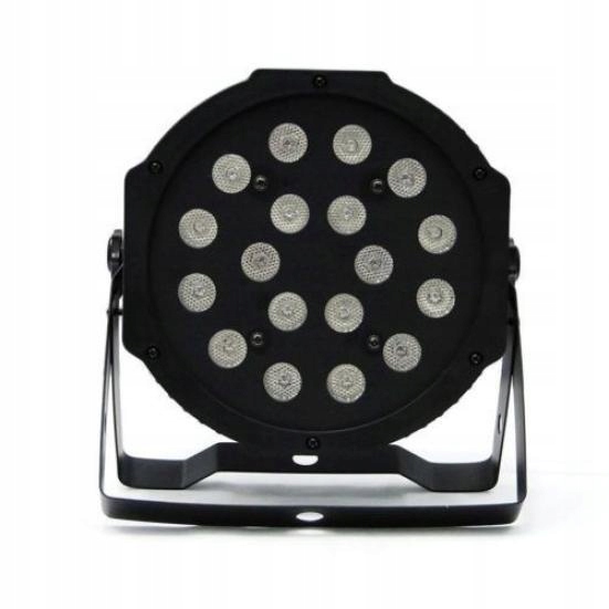 Профессиональный прожектор PAR, оснащенный 18 RGB-диодами. Устройство поддерживает сигналы DMX и имеет 4 режима работы с возможностью их модификации. Устройство имеет мощность до 30 Вт и питается от сети 230 В. Корпус изготовлен из прочного пластика.