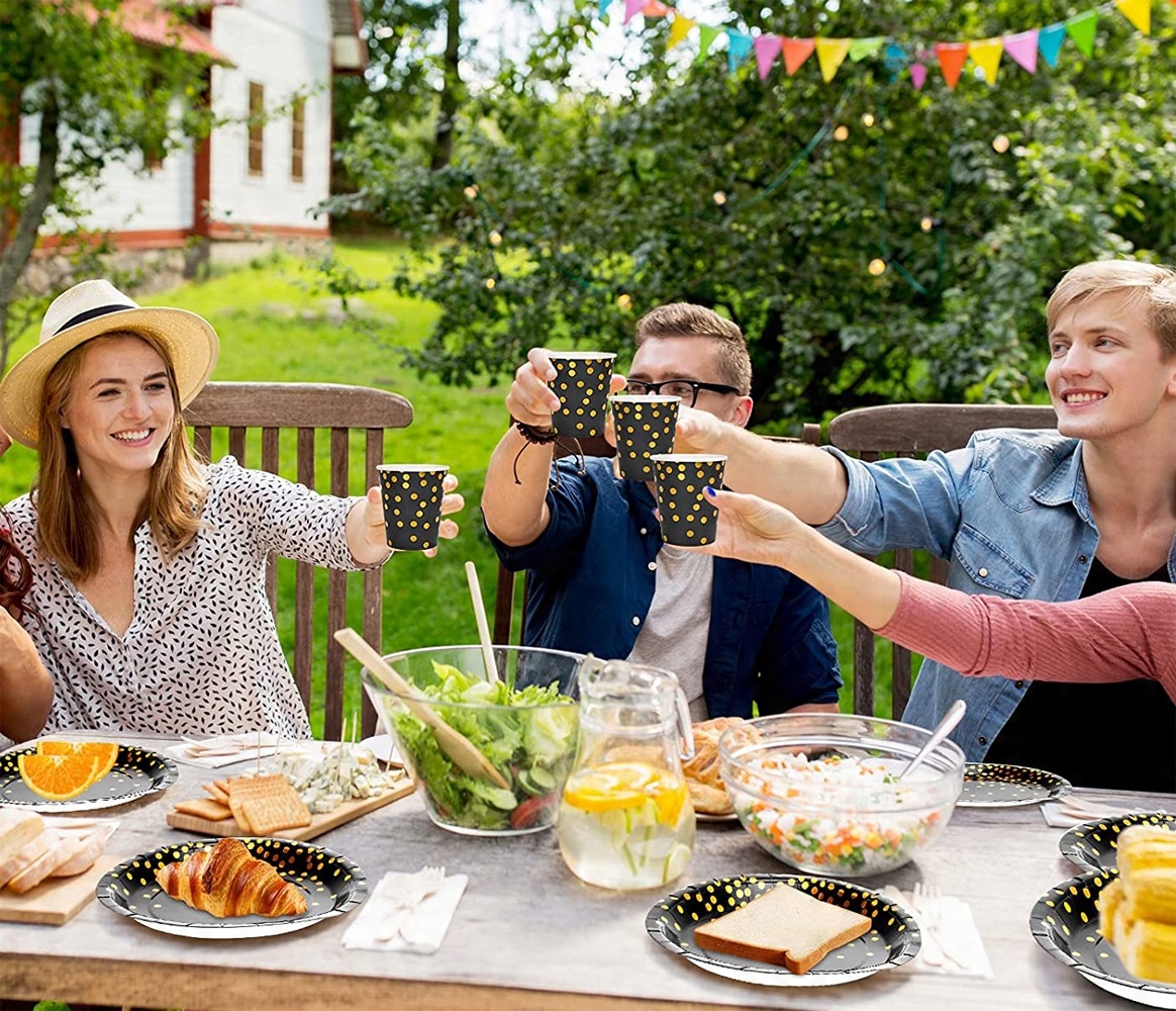 Набор бумажных тарелок и чашек «Черное и Золотое» 12 шт.