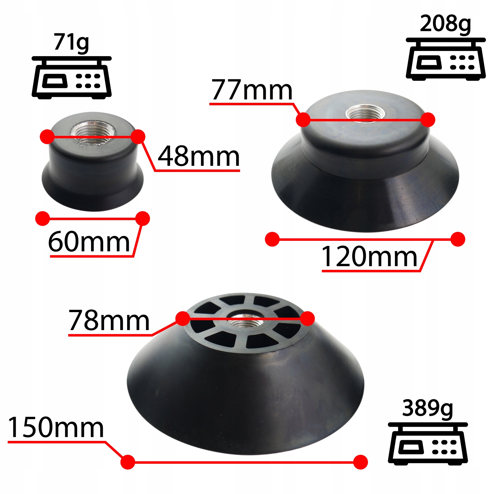 - ⭐ Три резиновые присоски: 60 мм, 120 мм, 150 мм