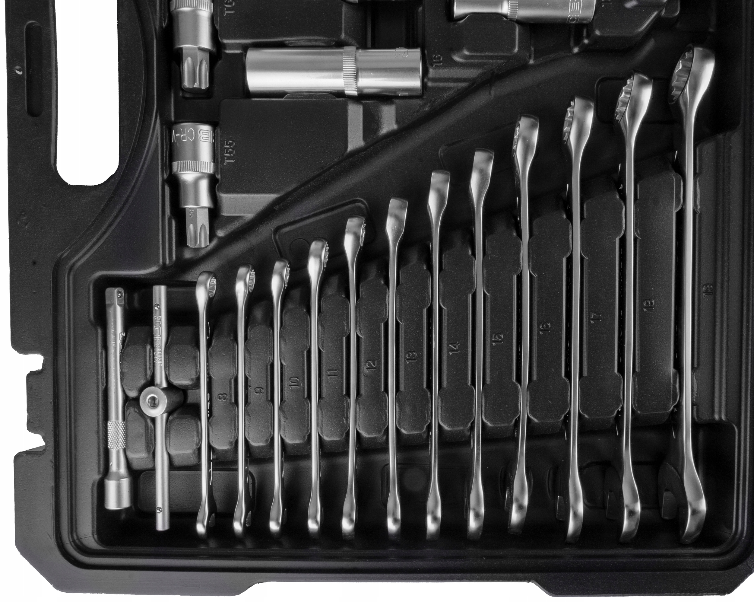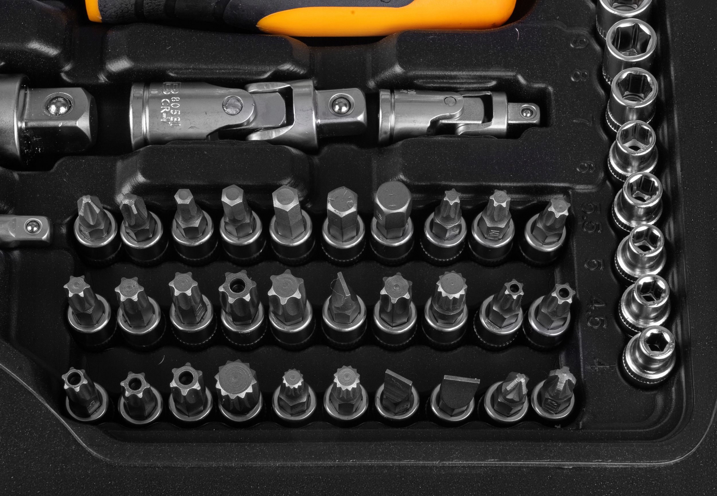 Набор включает в себя широкий выбор гаечных ключей, гремучих, битов, оправдания и аксессуаров, таких как расширения, суставы, отпечатки и биты b> p >