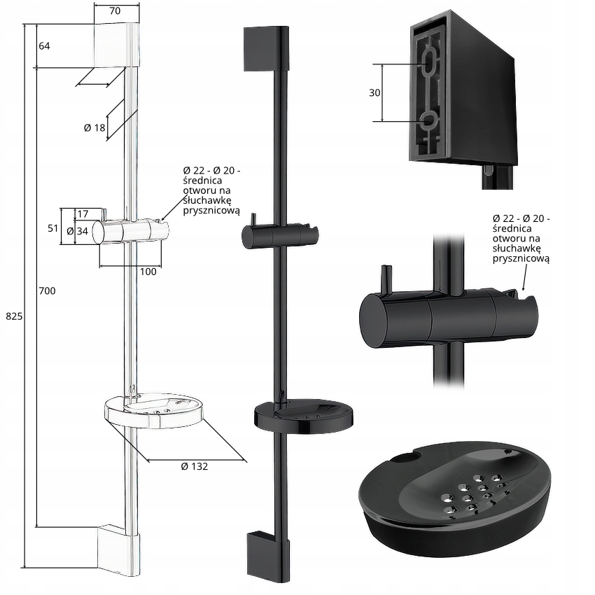 Очень красивый, современный регулируемый душевой бар sotbe lark lark-dc60-235343333 с мыльным блюдом, идеально подходящим при плавании в душе и в ванне. Палка изготовлен из нержавеющей стали, в то время как ручки скрепления и мыло изготовлены из пластика