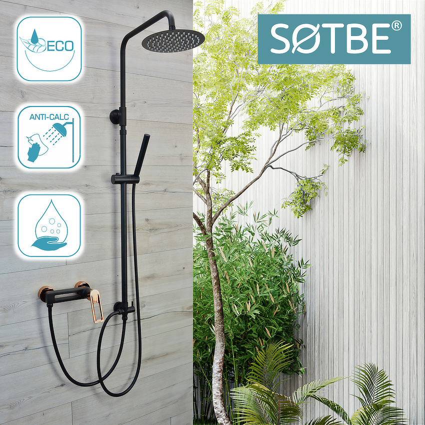 ✅ Галерея аутентичных фотографий Sotbe Loft Svart Gold набор для душевой батареи + смеситель с высоким варбазином + 80-сантиметровый стержень для душа lof-b/g-so- 1256833333_LOF-B/G-SKH-125688333_LARK-DB