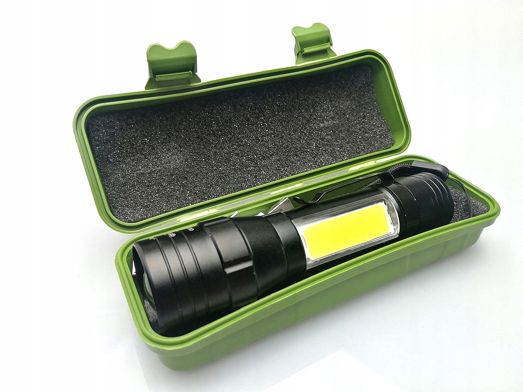 Маленький светодиодный фонарик CREE на аккумуляторе с зумом + полоска COB