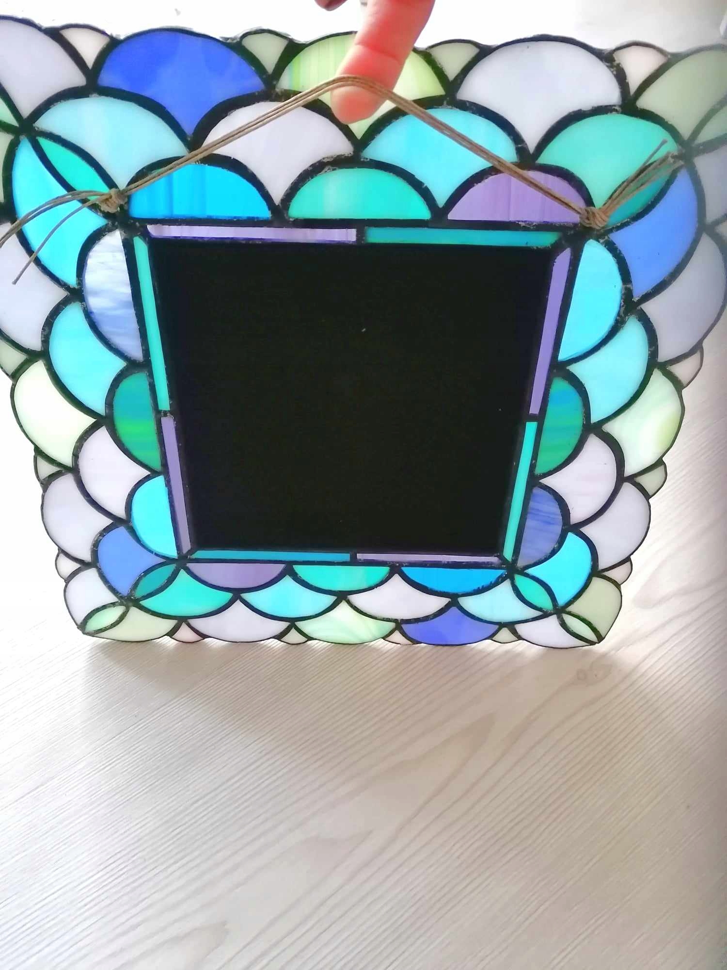 Витражный комплект состоит из витражного зеркала и витражного подсвечника. Комплект выполнен в традиционной технике Тиффани по оригинальному дизайну в польской витражной студии.