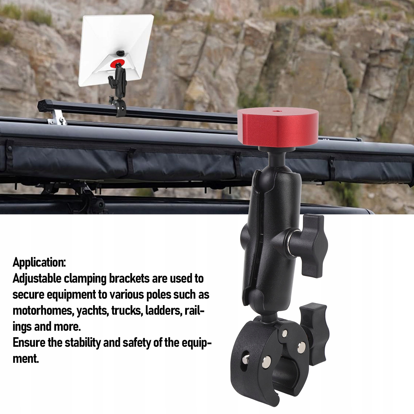 1. Регулируемые зажимы зажимов: в случае мини -измерений он предназначен для универсальных применений на RV, яхты, туристы, грузовики, лестницы и балюстраде, обеспечивая стабильную и безопасную установку для устройств MINI.
