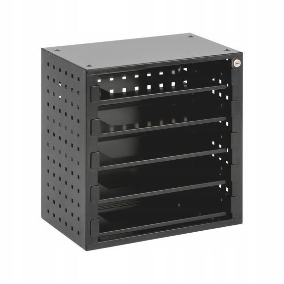 - Боковые панели и задняя панель с квадратной перфорацией для аксессуаров из ассортимента перфорированных панелей.