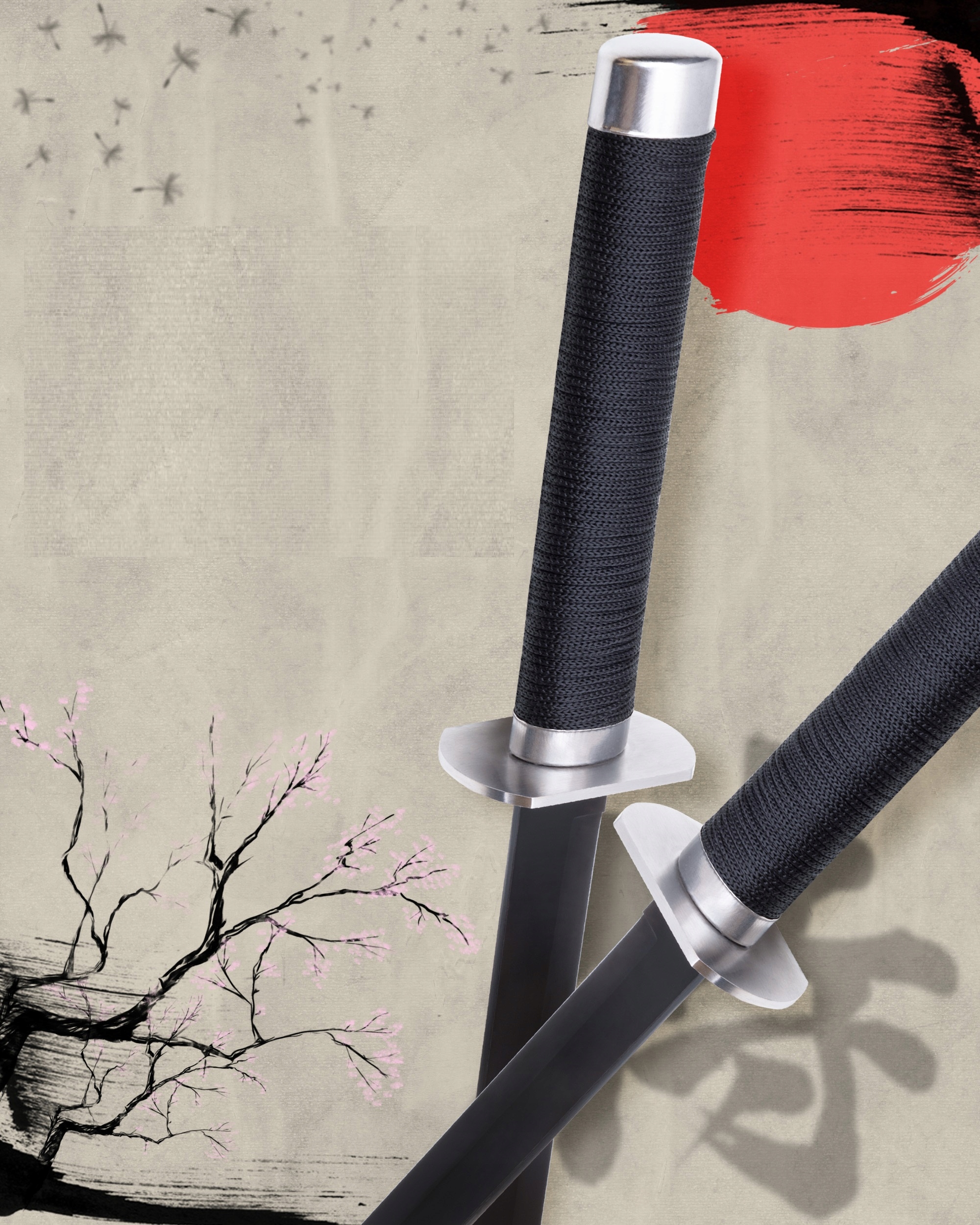 НАБОР ИЗ ДВУХ МЕЧЕЙ НИНДЗЯ С НЕЙЛОНОВЫМИ НОЖНАМИ HK-1456 ОСТРЫЙ И ОПАСНЫЙ