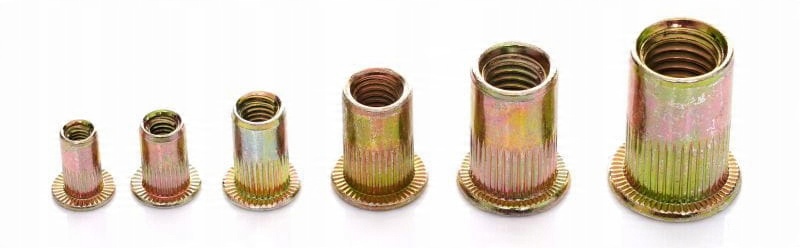 Заклепочные гайки позволяют ввинчивать винт с метрической резьбой в листовой металл или другие материалы, где нет возможности нарезать резьбу.