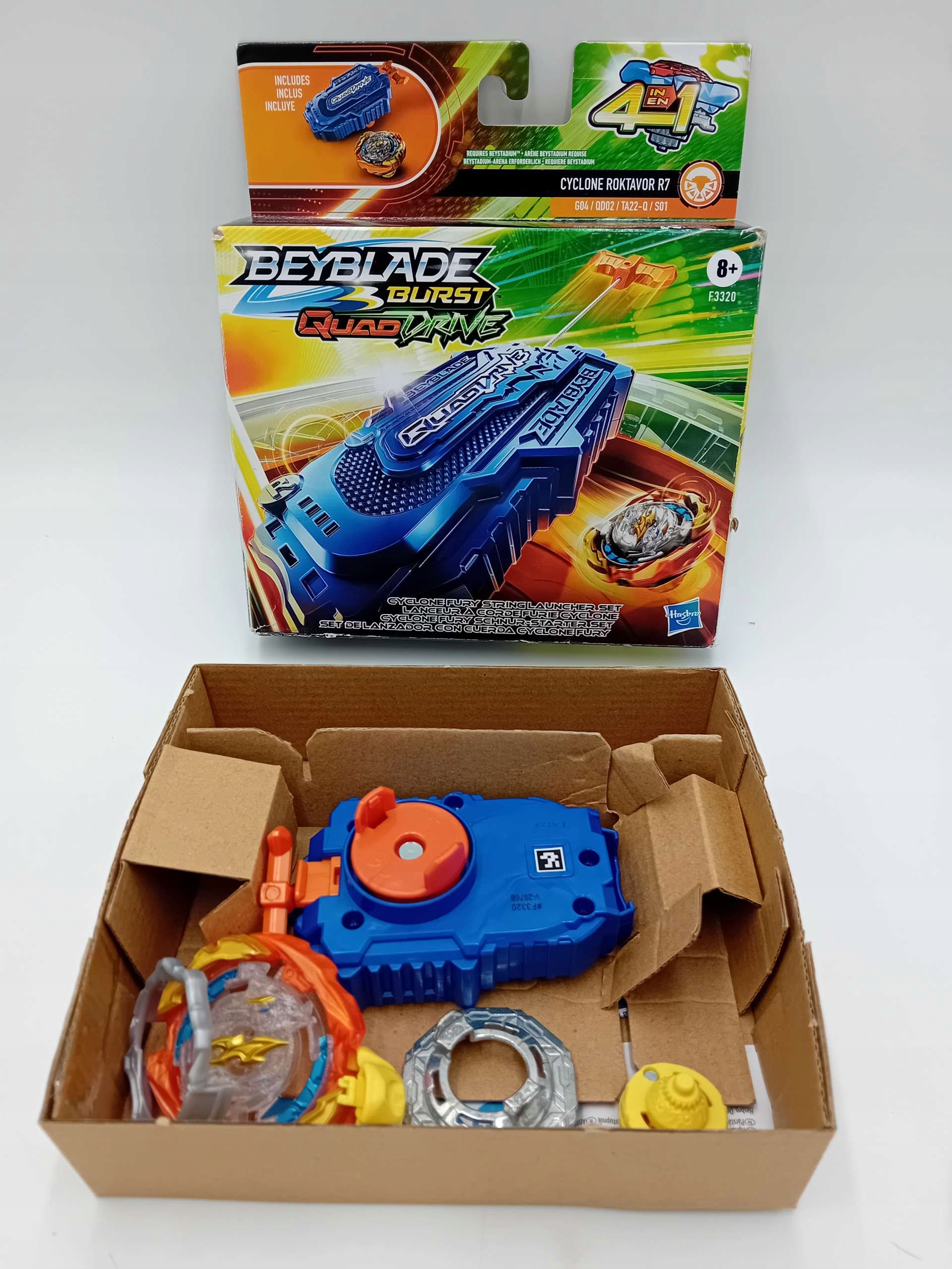 Beyblade QuadRive Technology ставит будущее BeyBlade в ваши руки благодаря первой вершине BeyBlade 4 в 1! Каждый верхний квадроцикл может быть настроен по 4 различным способам, что дает 4 способа стратегии, 4 способа настройки, 4 боевых режима и 4 режима победы! Записка цепи циклона ярости включает в себя 1 циклоновую ярость и 1 вращение вправо: Cyclone Roktavor R7 G04 QD02 TA22-Q S01. Строка пусковой установки позволяет быстро начать без необходимости вставить Ripcord. Запустите вправо или влево, переключив переключатель на пусковую установку. Отрегулируйте режим верхнего и вершины для типа атаки или режима Core+ и Apex+ для типа прочности. Используйте мощность технологии QuadDrive в QuadDrive Beystadium (продается отдельно, в зависимости от доступности). Сканируйте код, чтобы освободить пики в виртуальных битвах в приложении Beyblade Burst! Примите участие в прямых битвах со стадионами Beyblade Burst Beystadium, пусковых установок и спонсоров по дороге в Beymaster!