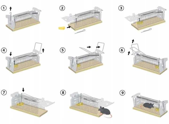 Специальный механизм пропускает грызуна внутрь и не выпускает его наружу. Механизм защелки на основе прочной пружины обеспечивает оптимальную чувствительность к движениям грызунов. Ловушка также имеет крючок для размещения приманки, что облегчает ловлю грызунов.