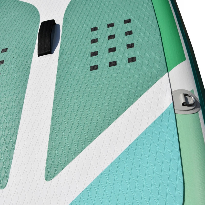 В центральной части доски SUP находится специальный поролон из материала высочайшего качества, который минимизирует риск поскользнуться на мокрой поверхности и гарантирует устойчивость.