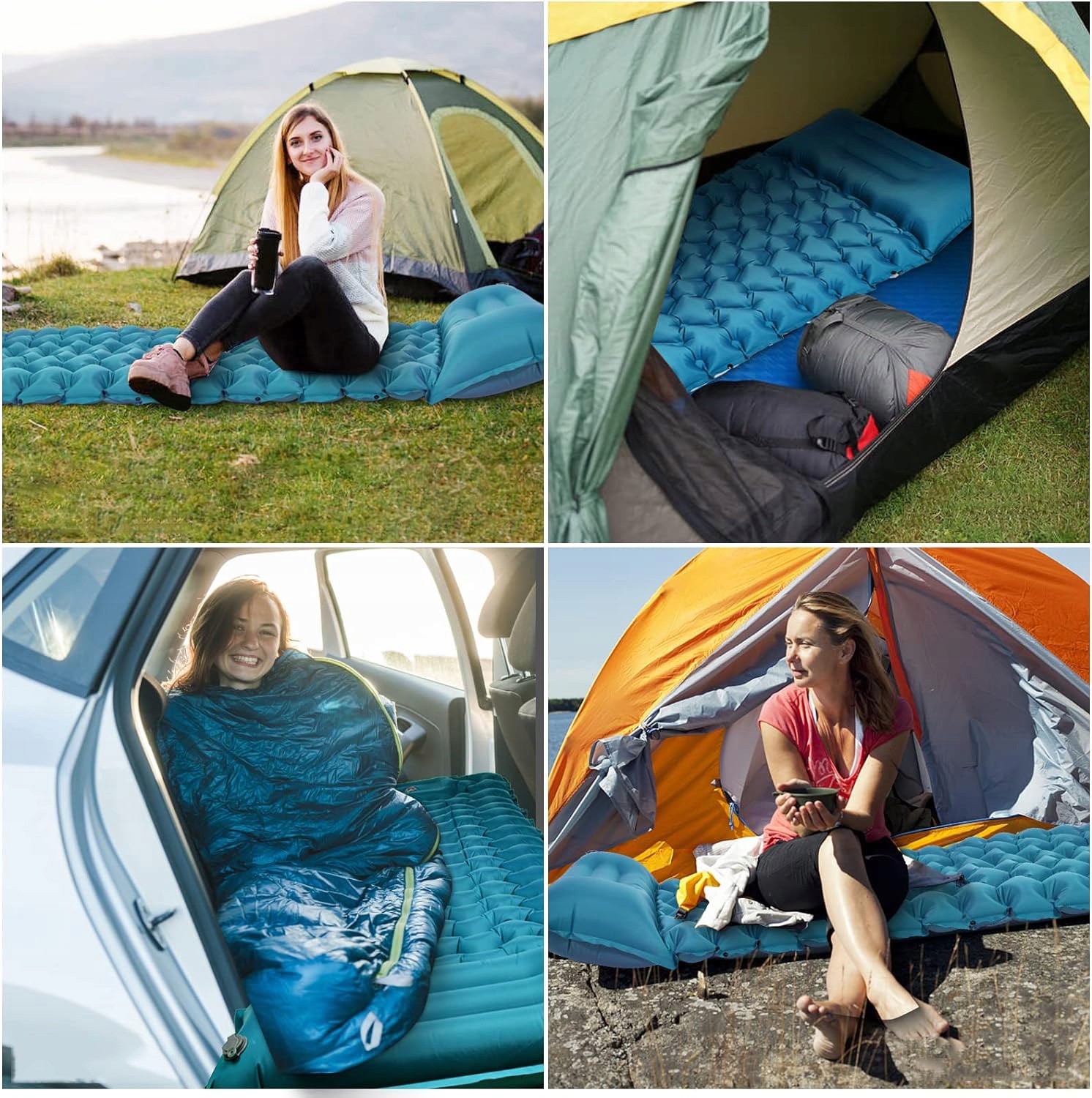☁ ☁ 【【широкое использование 】 Идеально подходит для кемпинга, походов, однодневных поездок, езды на велосипеде, езды на машине, поездок на рюкзаке, походов и пляжа. Практичный, инфляционный спальный коврик -идеальный компаньон во время походов.