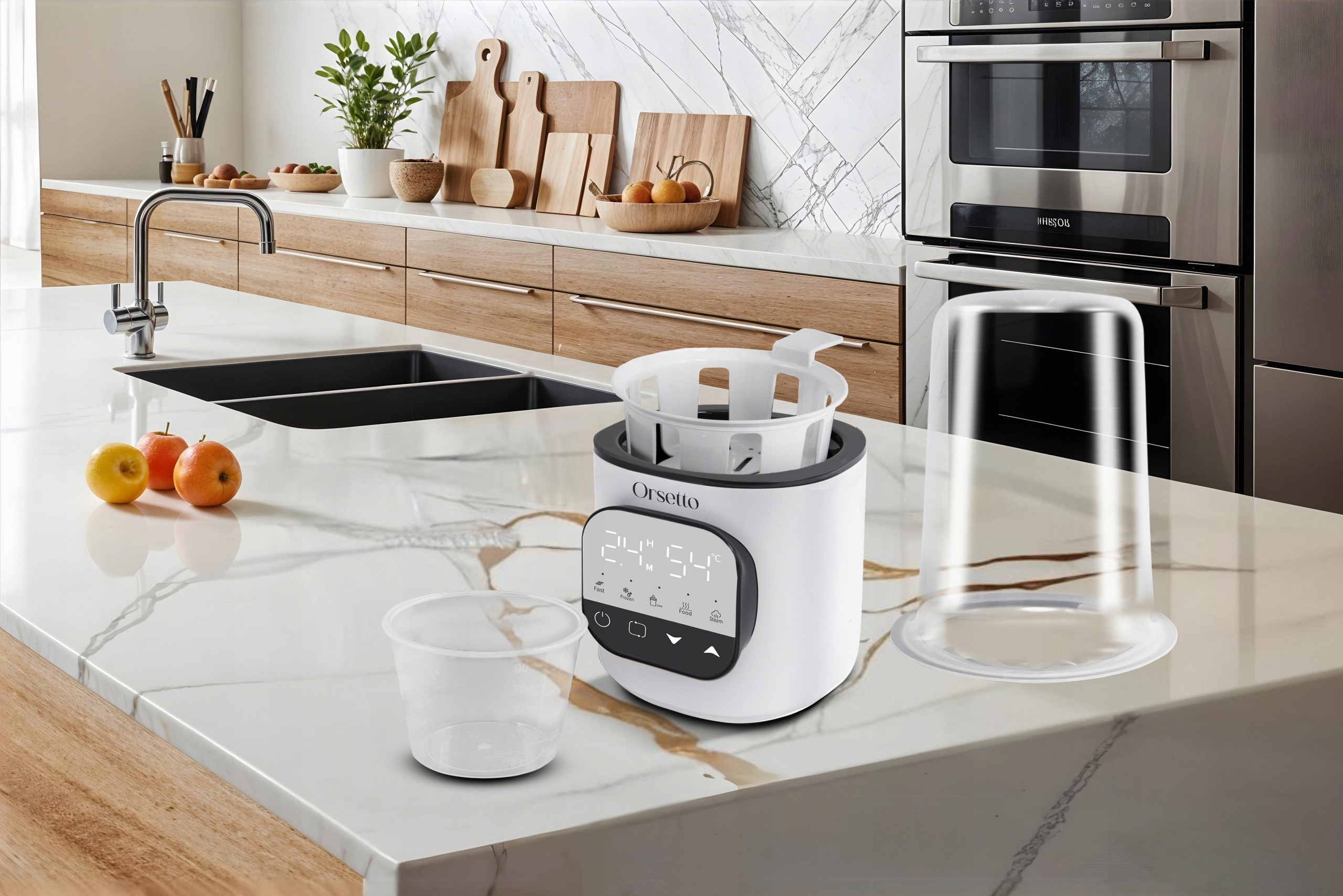 В повседневной жизни родителей нет нехватки проблем, поэтому мы рады представить наш продукт Gusto 3.0, который был создан для облегчения и сделания ваших ежедневных обязанностей более приятными. Откройте для себя нагреватель и стерилизатор и стерилизатор 5IN1 - Orsetto Gusto 3.0, оснащенный электронным дисплеем времени и температуры. Благодаря 5 различным режимам эксплуатации - быстрое нагрев, оттаивание, нагрев твердых продуктов, нагрев жидкости и стерилизация, устраняющие до 99,9% бактерий - ежедневные задачи станут простыми и меньше трудоемкими. Gusto 3.0 - ваш незаменимый полузащитник в любой ситуации.