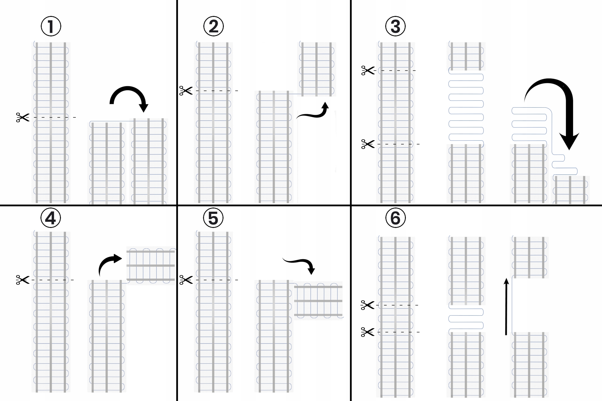- Нагревательный мат не режем, только сетку и прикрепленный к нему кабель согнуть нагревательный провод соответствующим образом в соответствии с инструкцией.