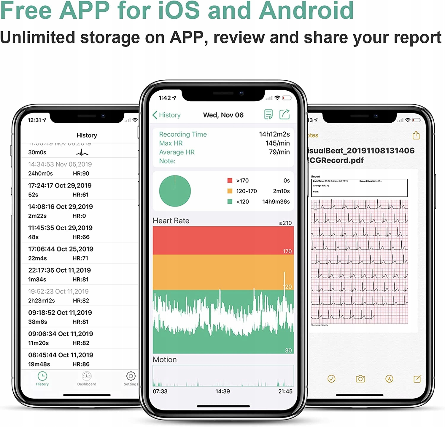 - < б> Интеллектуальное управление данными с помощью памяти: Встроенная память может хранить до 10 наборов данных (всего 30 часов). Данные автоматически синхронизируются при подключении устройства к приложению. Неограниченное хранилище в приложении позволяет просматривать отчет истории в любое время. Одним щелчком мыши вы можете поделиться отчетом о частоте пульса в формате JPG и отчетом о волнах в формате PDF с врачами и семьями. Примечание: обновление упаковки, 2 вида внешнего вида отправляются случайным образом. Вы можете быть уверены, что функциональность продукта не изменилась.