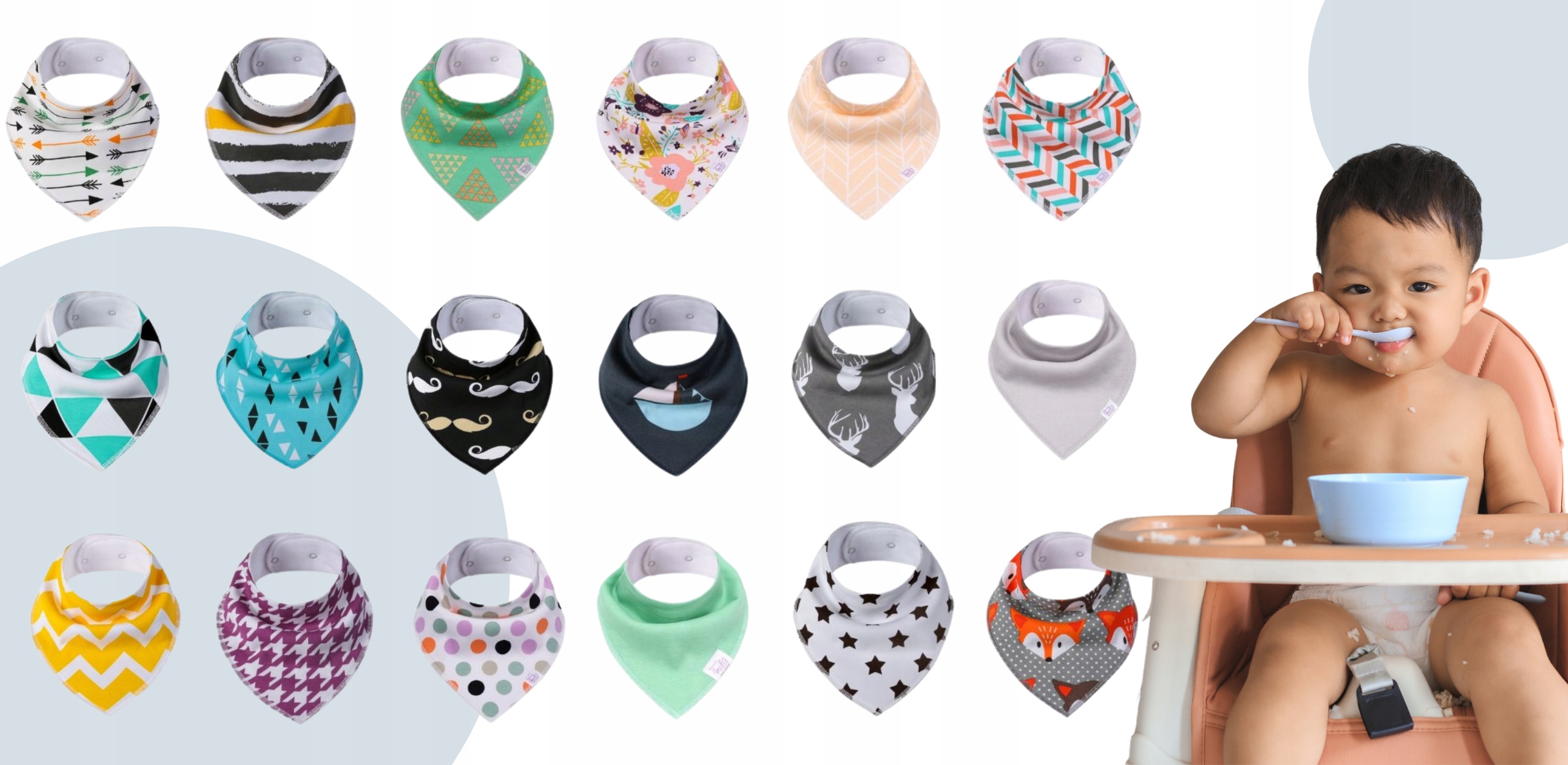 - Можно использовать как нагрудник во время еды, как шарф/шарфик/шарф или как стильное дополнение к одежде.