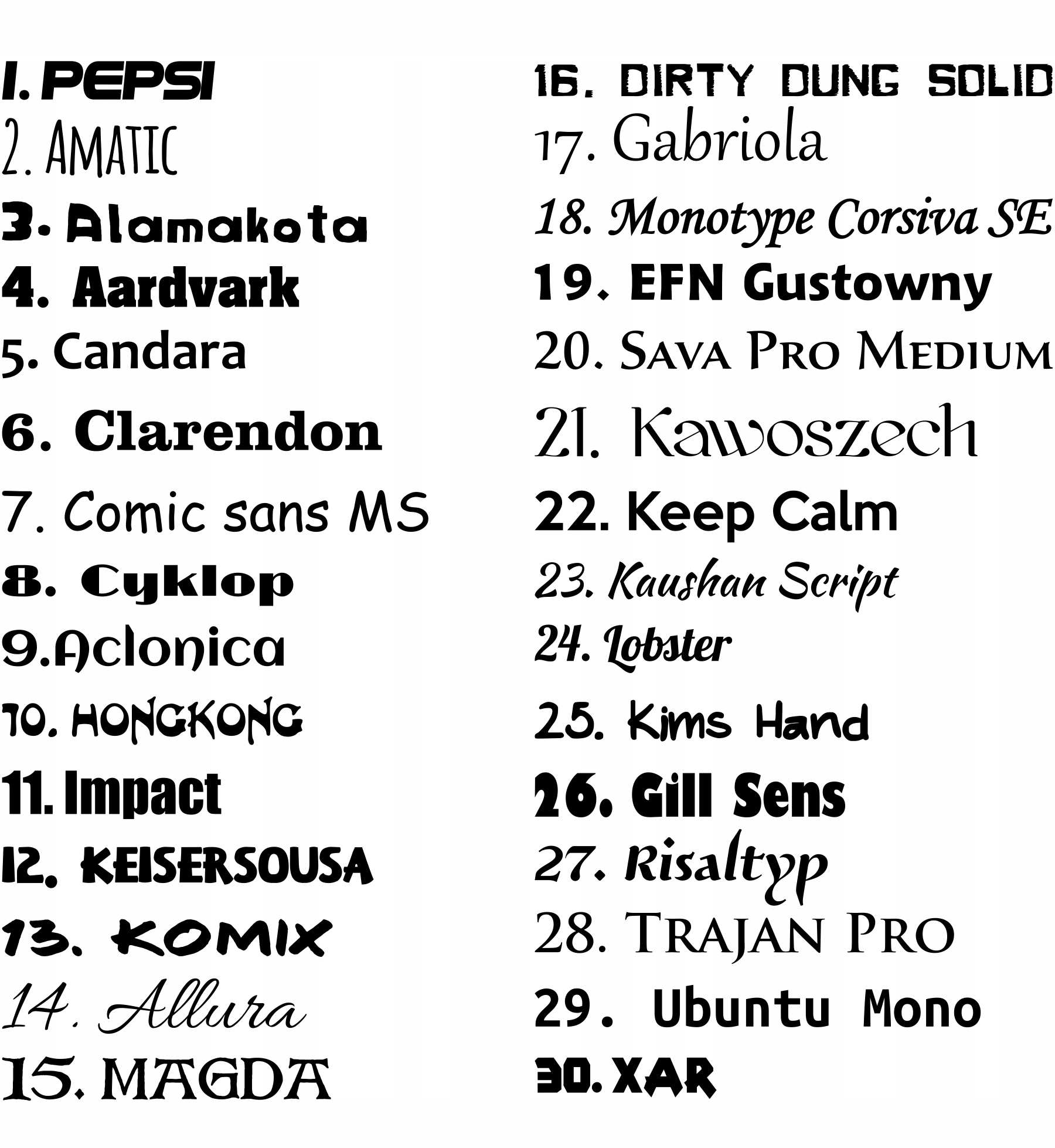 Если вы не знаете, как выглядят все символы выбранного шрифта, введите его название в Google и выберите графический вариант.