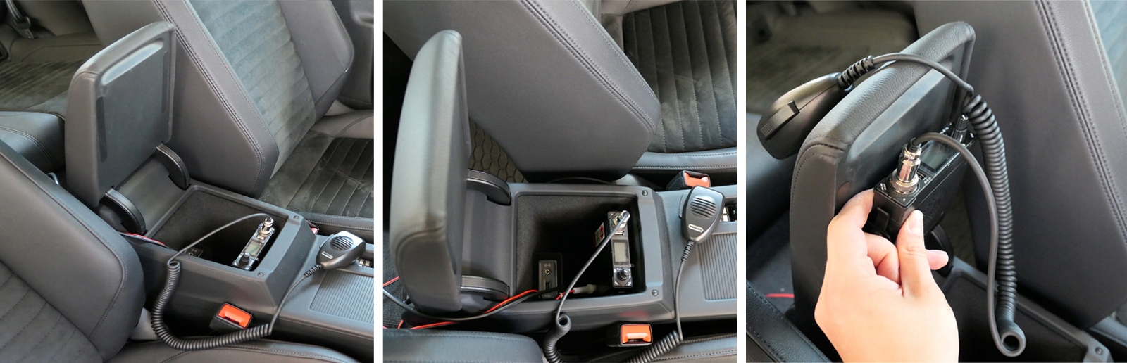 Миниатюрная радиостанция CB может поместиться, среди прочего: в подлокотнике, бардачке, под сиденьем, рядом с пассажиром