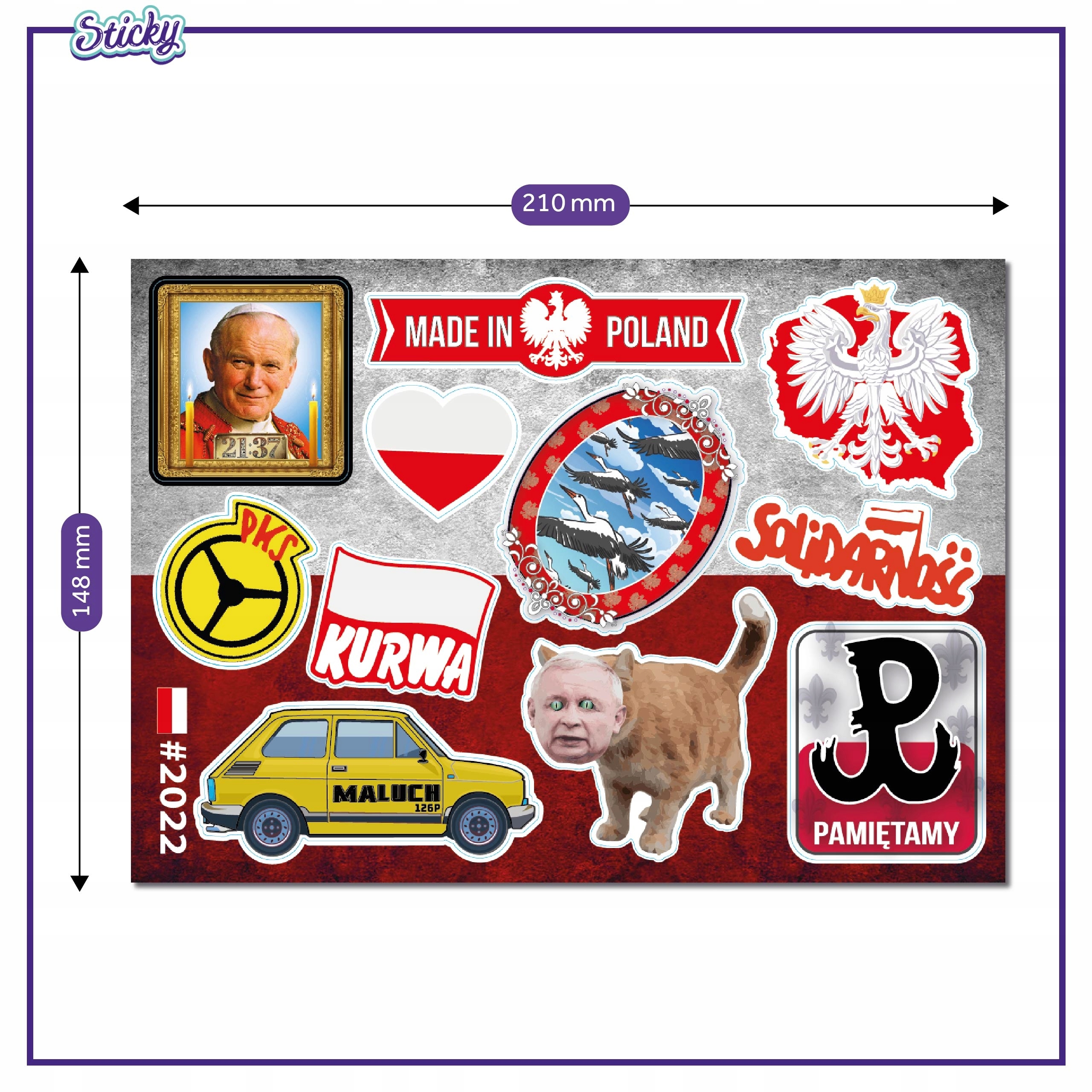 Лист из 11 наклеек был специально разработан нашими дизайнерами, чтобы выразить то, чем славится наша Польша. На листе имеются следующие наклейки: