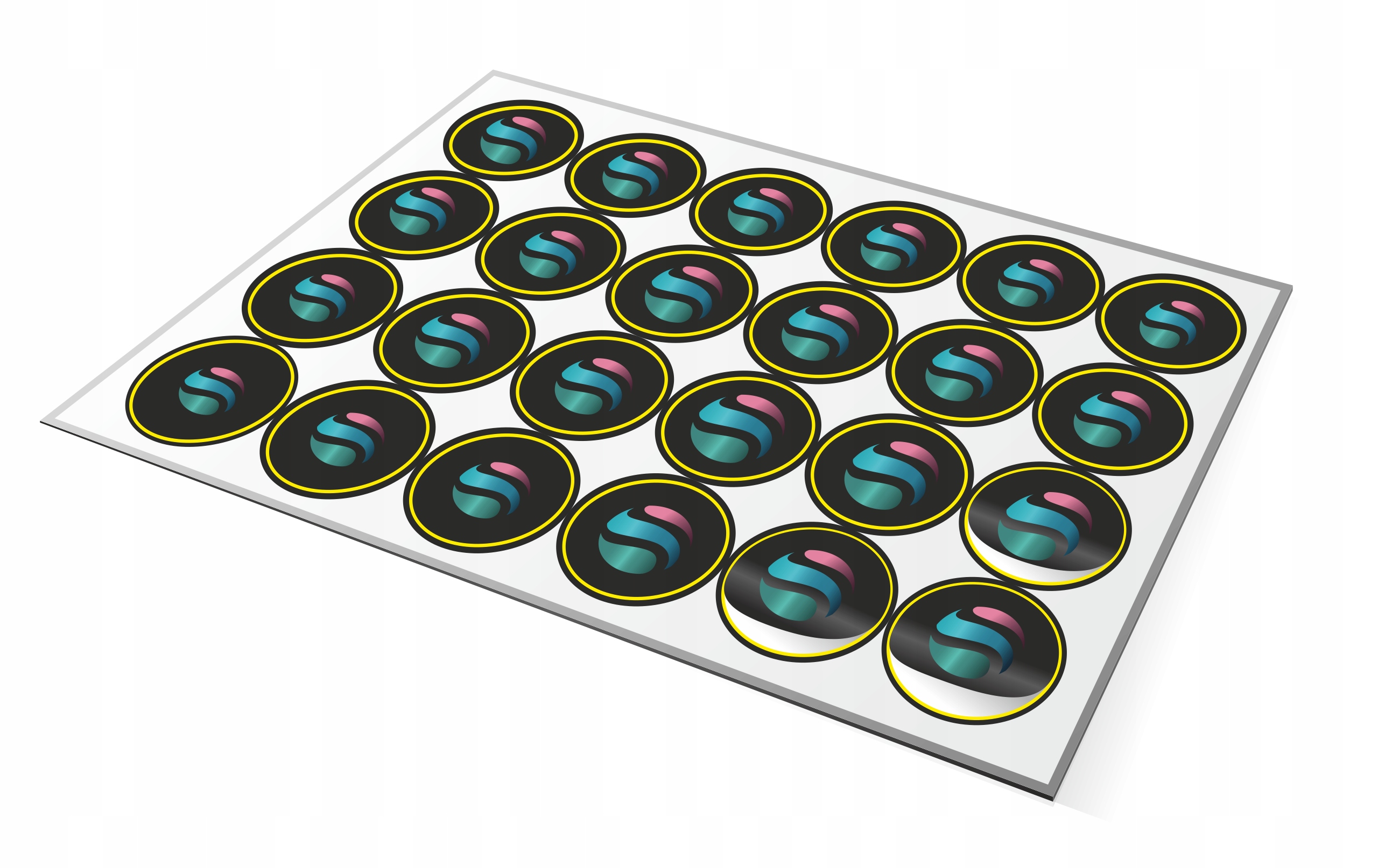 Расположите наклейки на листе с интервалом 4 мм