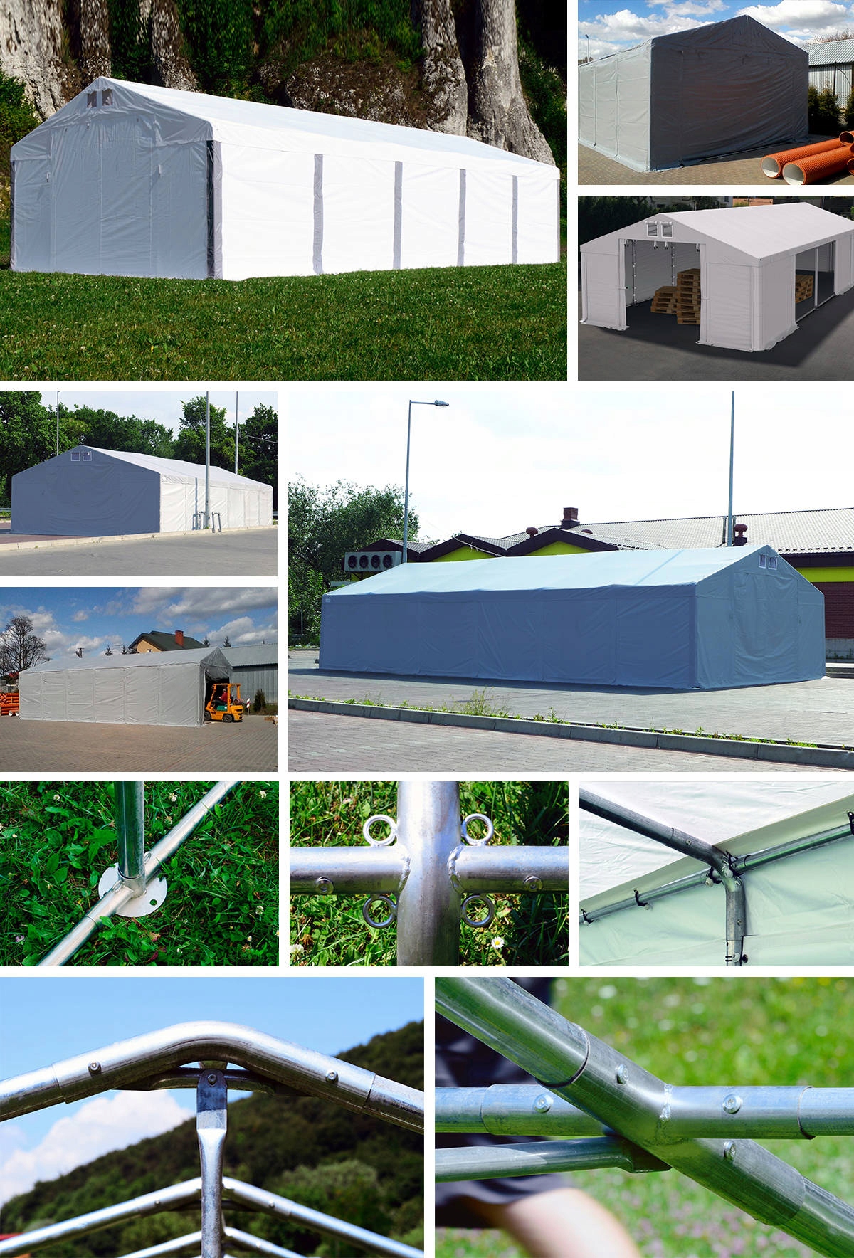 Модульная конструкция позволяет легко увеличивать или уменьшать высоту палатки. Для этого используется дополнительный подъемный комплект в виде прочных стальных труб длиной 0,5м или 1м.