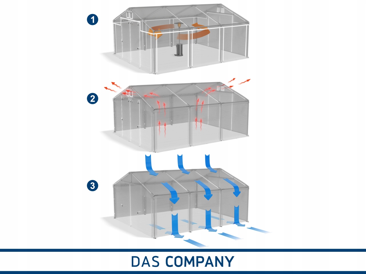 С обеих сторон крыши установлены вентиляторы со жалюзи. Созданная циркуляция воздуха предотвращает создание эффекта сауны и конденсацию воды.
