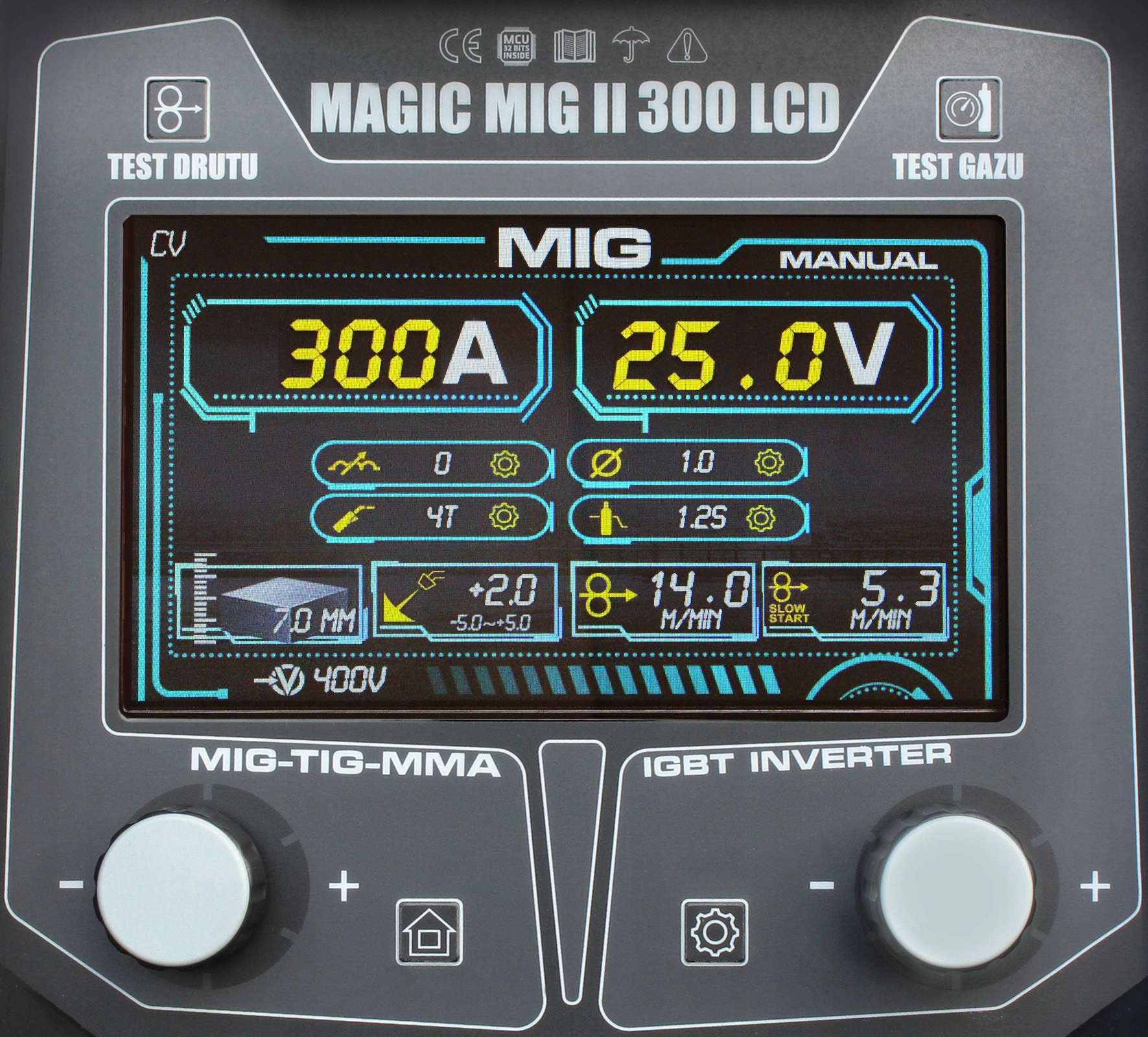 - Диаметр сварочной проволоки [мм]: 0,8–1,2