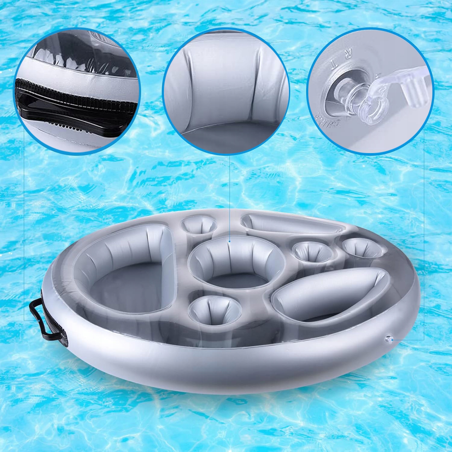 оснащен 2 ручками, облегчающими передачу, идеально подходит для использования на бассейнах, пляжах, в спа, горячих источниках и других местах - идеально подходит для расслабления.