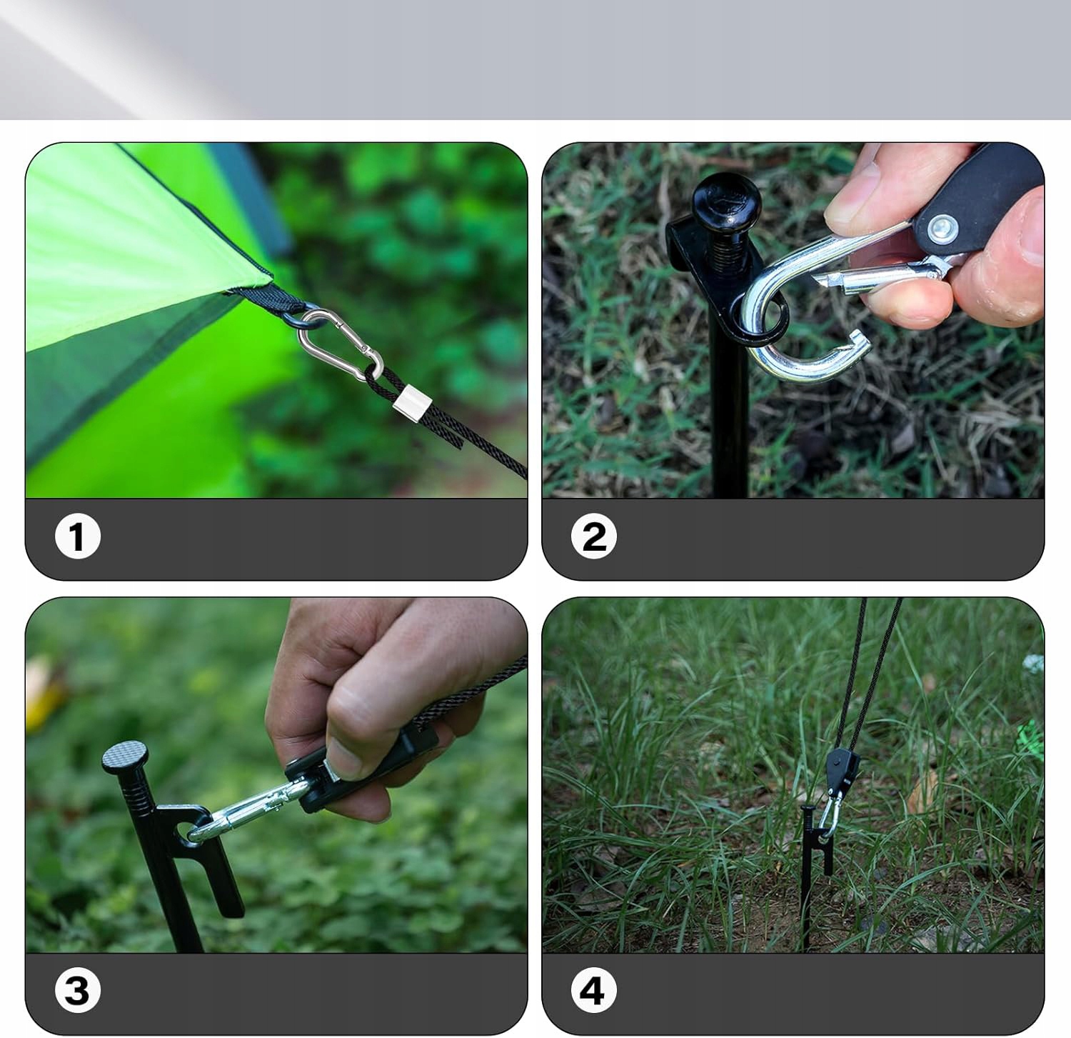 - используется для установки брезентов/палаток, сушки одежды, подвесного багажа, регулировки напряжения брезента, навеса, зарядки для кемпинга на мотоциклах и т. Д. Кемпинг.